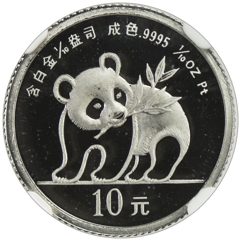 CHINA (PEOPLE'S REPUBLIC): 10 yuan, 1990, Y-267, 1/10 ounce pure platinum, Panda, NGC graded PF69 UC.