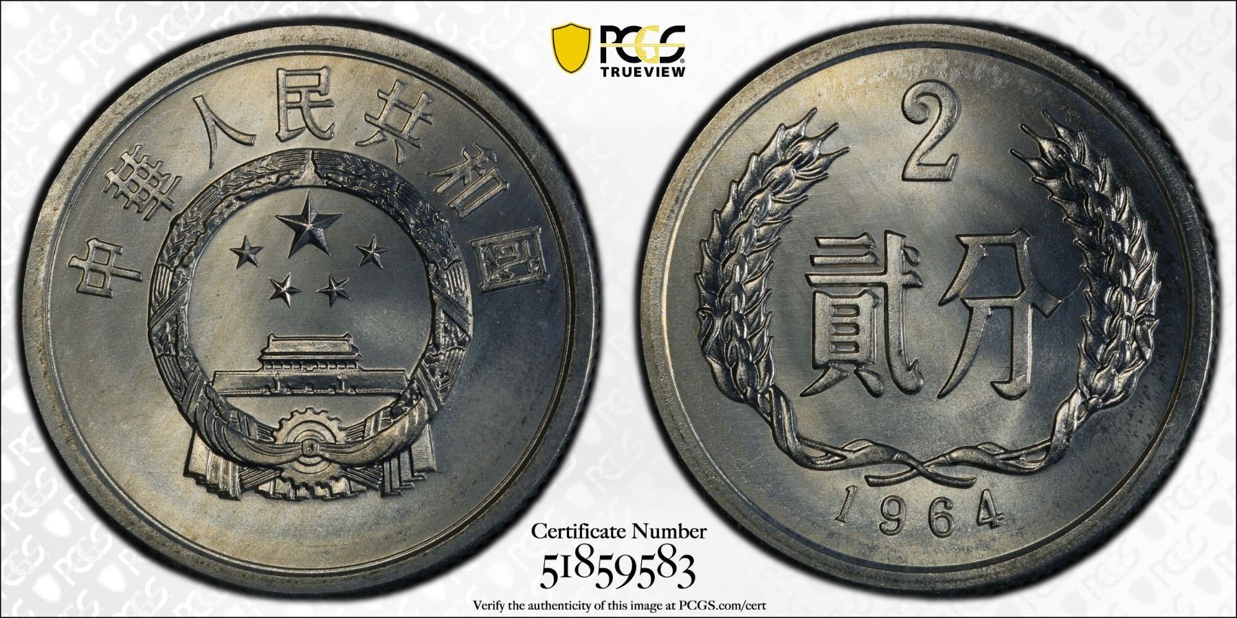 CHINA: People's Republic, 2 fen, 1964, PCGS MS65