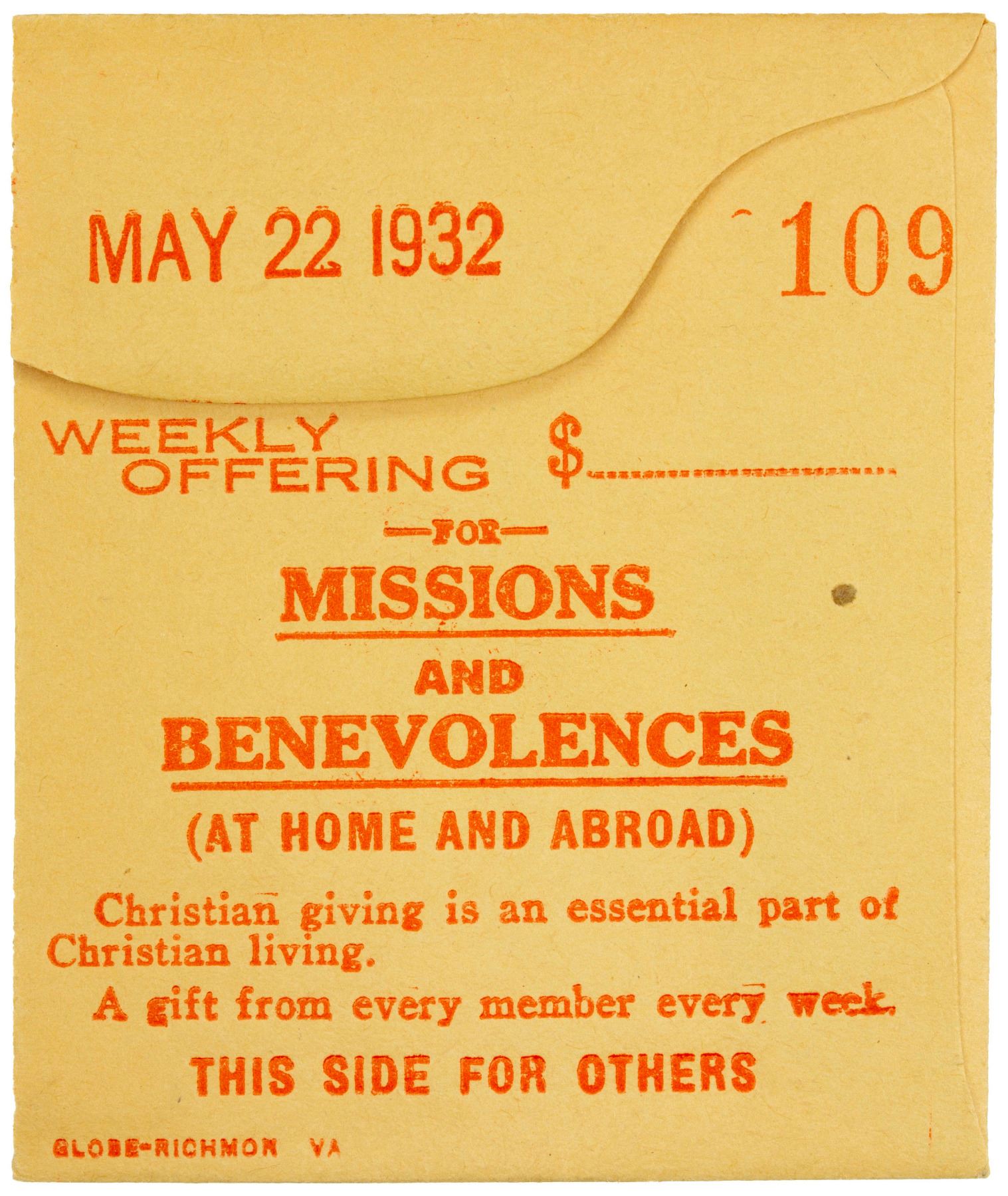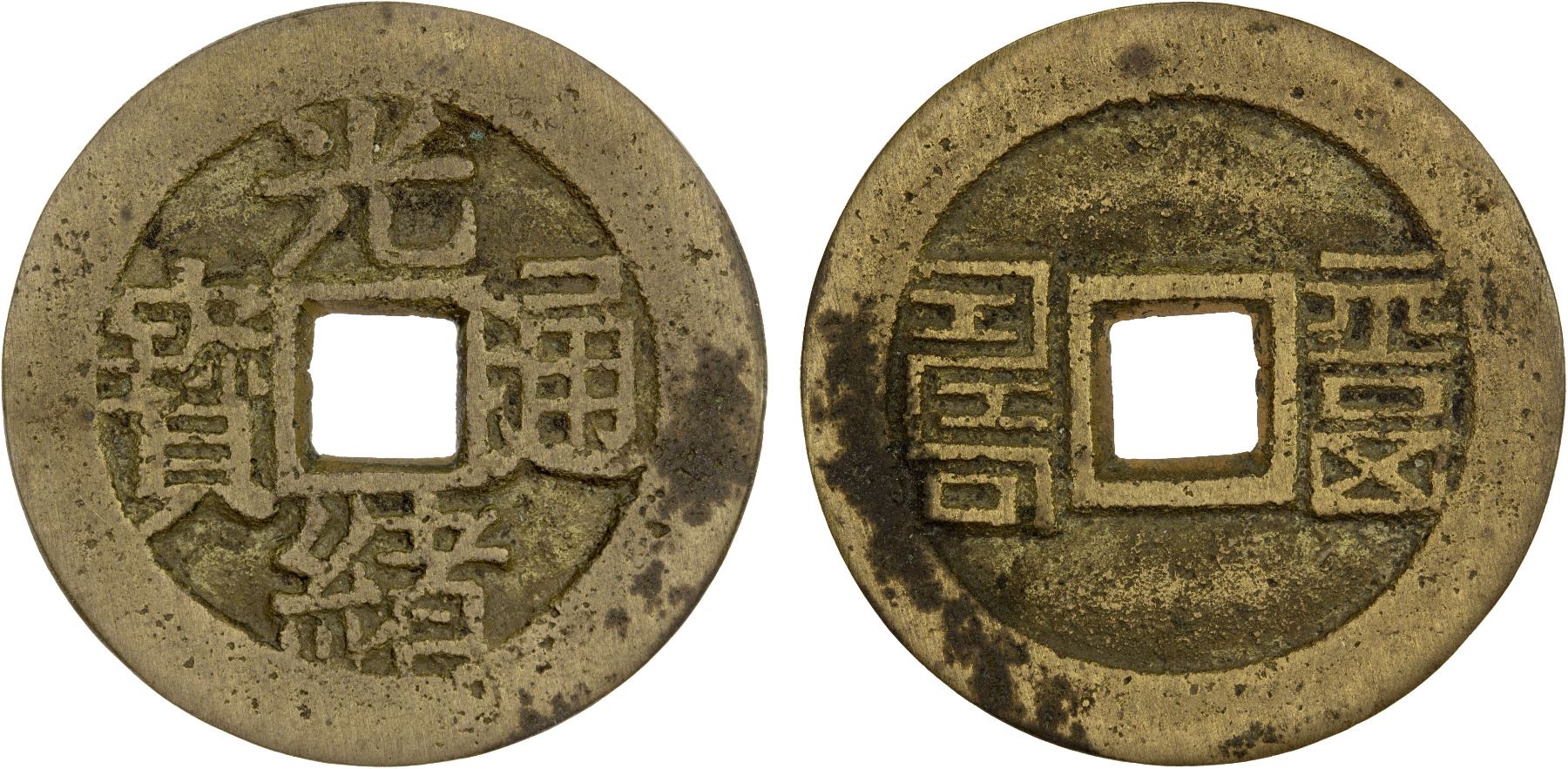 CHINA: QING: Guang Xu, 1875-1908, AE charm (5.67g), CCH-210, fu shou ("happiness and longevity") in seal script, light stain, likely made in Sichuan, VF, ex K.K. Lee Collection, in old American Missionary Church Tithe & Offering Envelope dated 22 May 1932. Empress Dowager Cixi is said to have had these palace charms made to give out on special occasions and important birthdays. She became the regent through a palace coup in 1861 and was the de-facto ruler of China until her death in 1908.