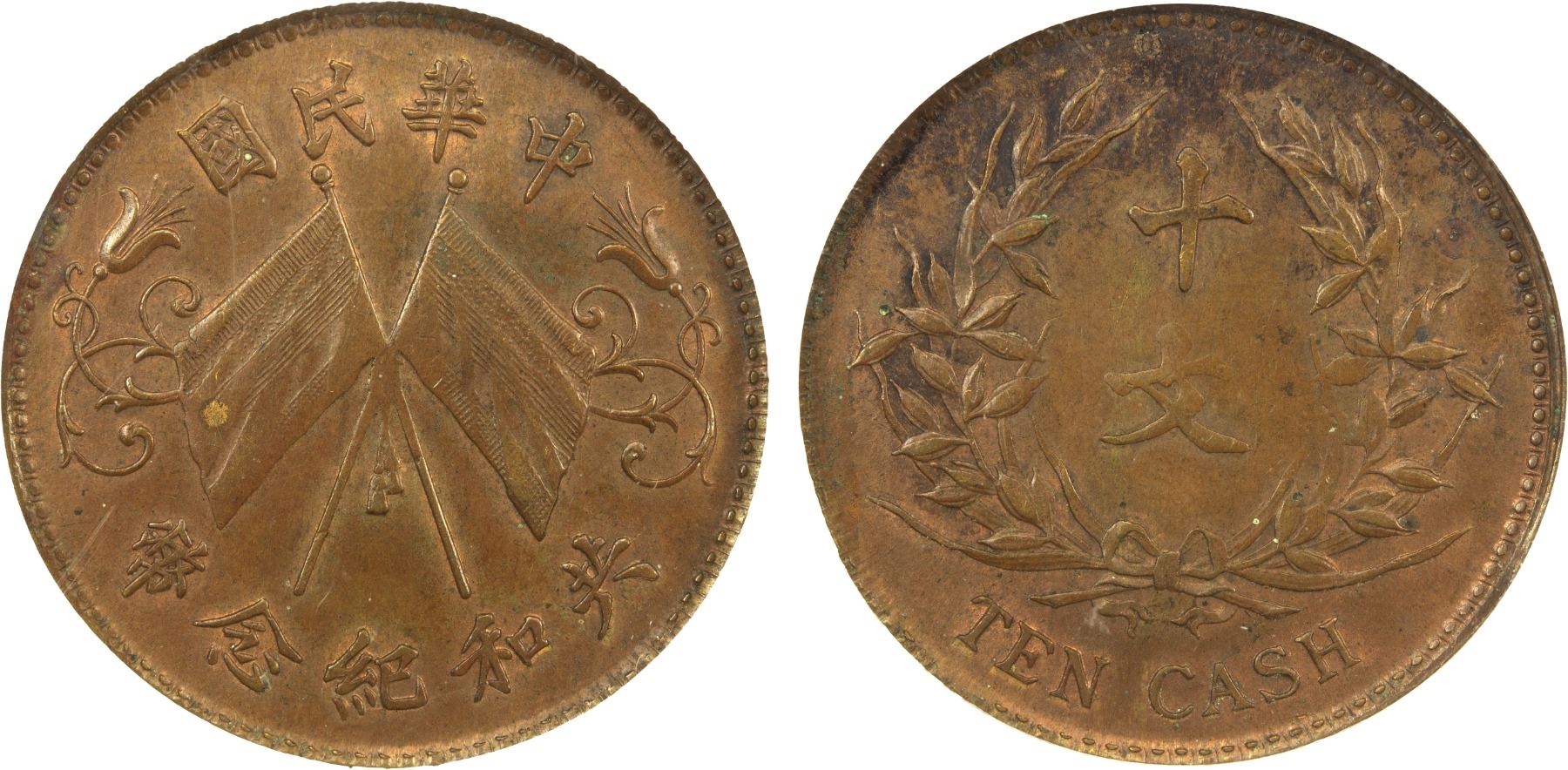 CHINA: Republic, AE 10 cash, ND (1914-17), Y-309, crossed Five-colored flags, scarce type. a brown lustrous pleasant example, NGC graded MS61 BN, ex The 1914 Collection.