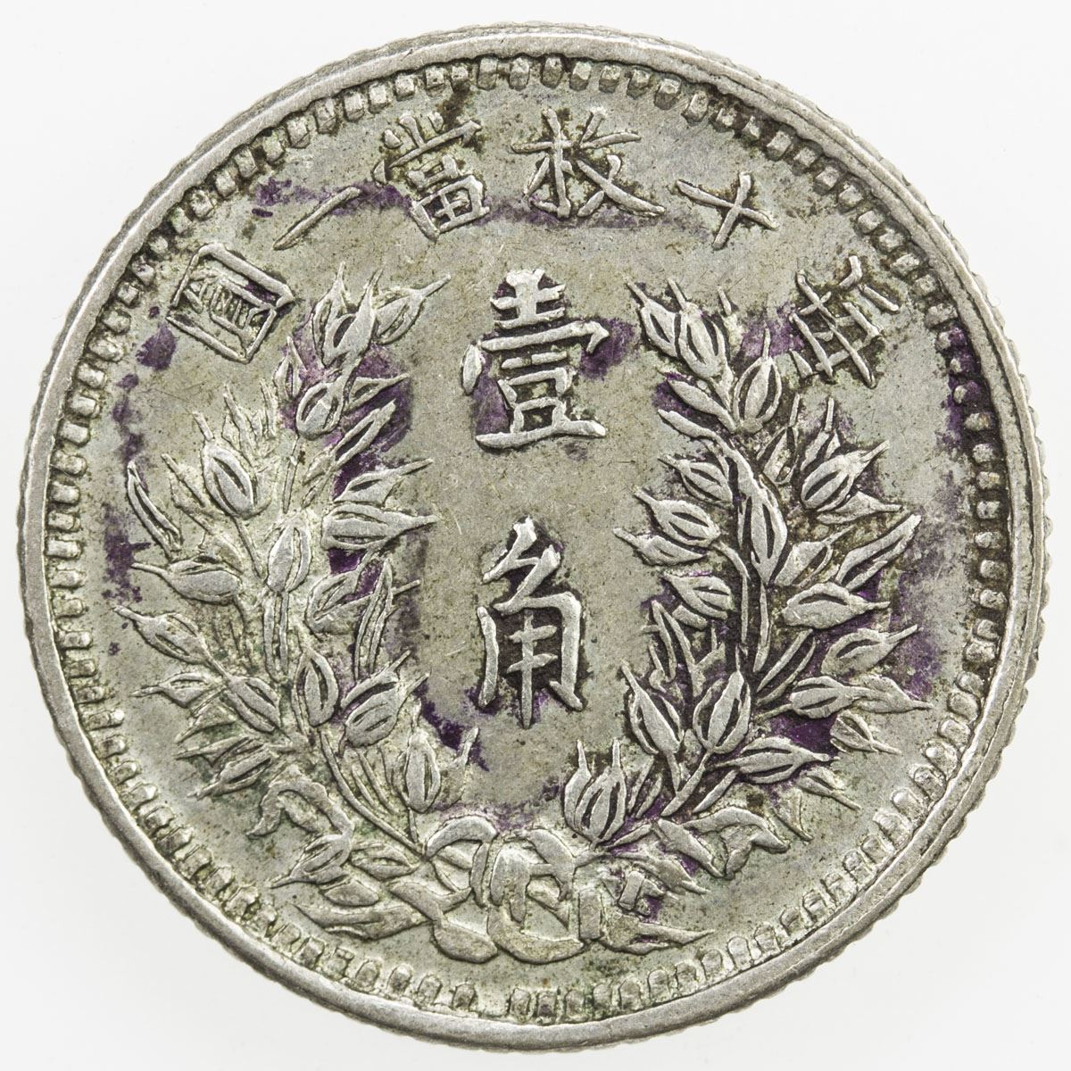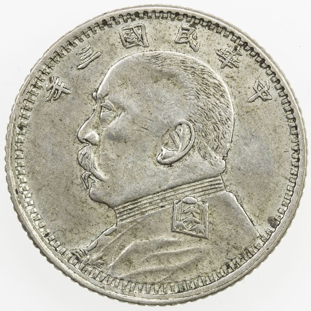 CHINA: Republic, AR 10 cents, year 3 (1914), Y-326, L&M-66, Yuan Shi Kai in military uniform, AU.