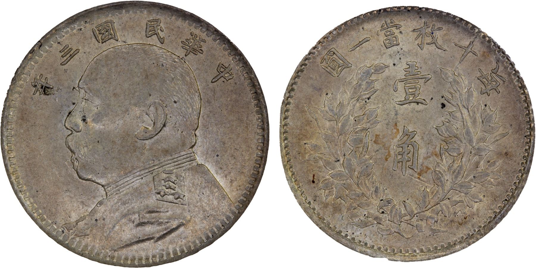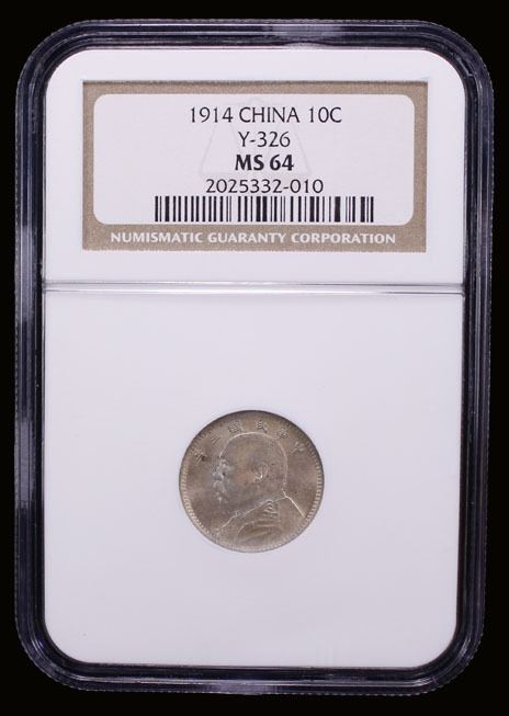 CHINA: Republic, AR 10 cents, year 3 (1914), NGC MS64