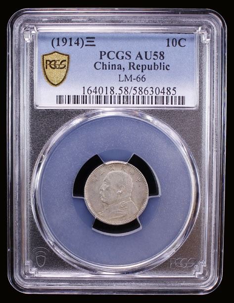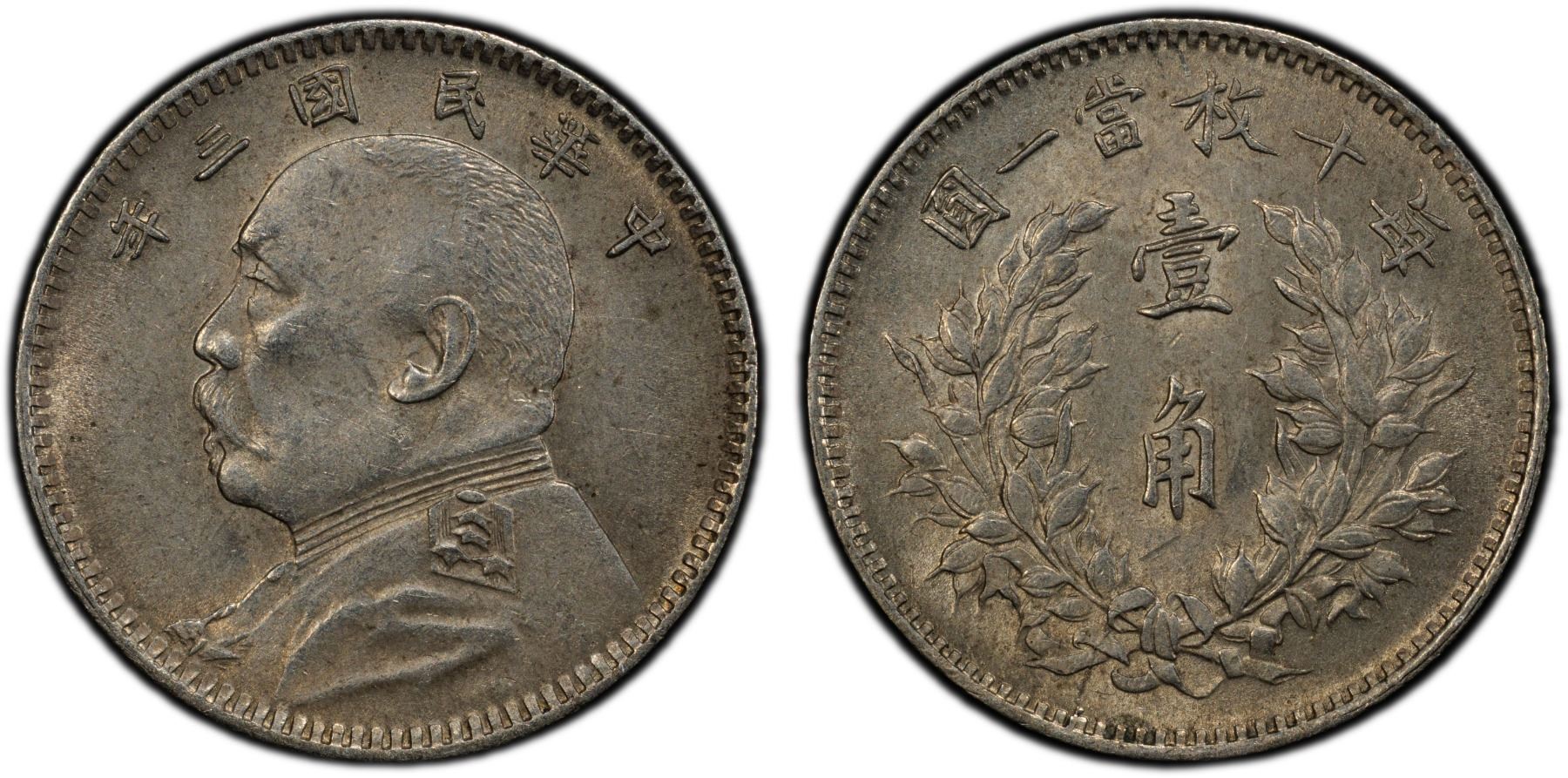 CHINA: Republic, AR 10 cents, year 3 (1914), PCGS AU58