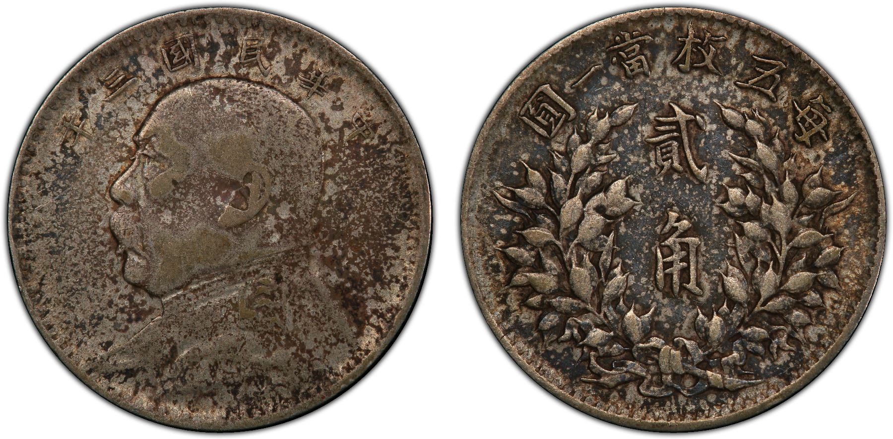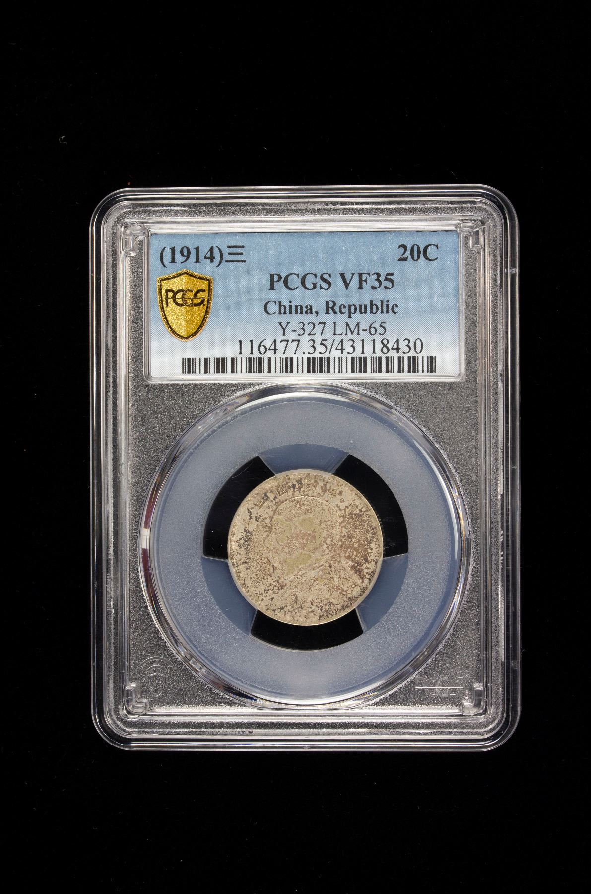 CHINA: Republic, AR 20 cents, year 3 (1914), Y-327, L&M-65, Yuan Shi Kai in military uniform, PCGS graded VF35.
