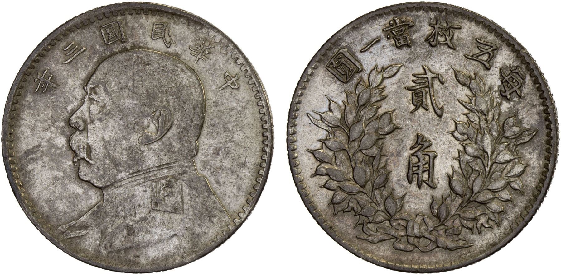 CHINA: Republic, AR 20 cents, year 3 (1914), XF