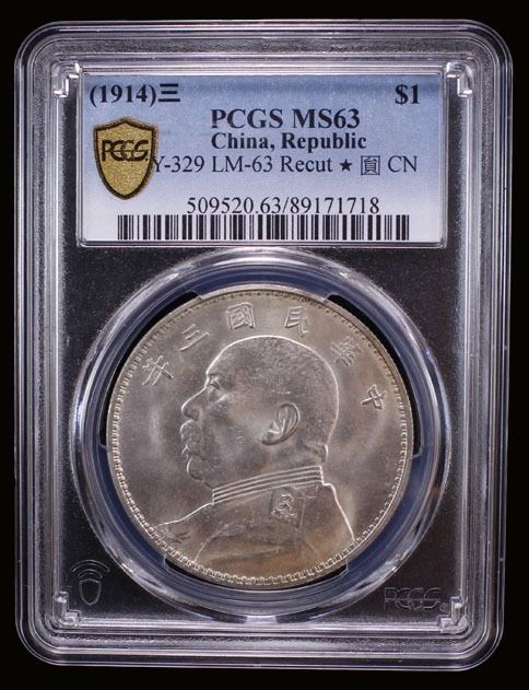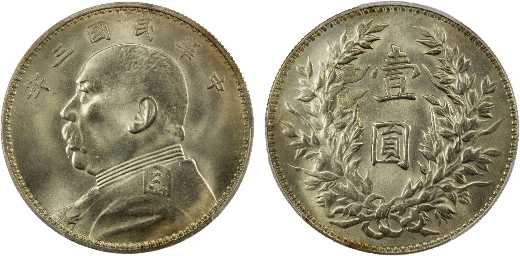 CHINA: Republic, AR dollar, Shanghai, year 3 (1914), PCGS MS63
