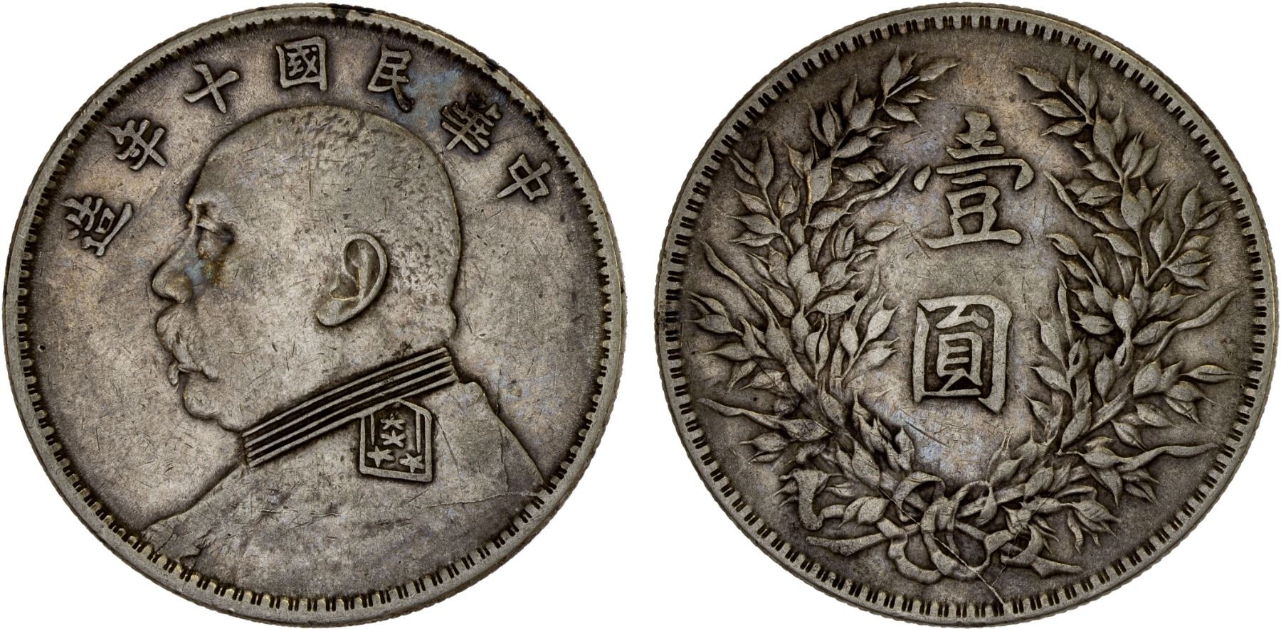 CHINA: Republic, AR dollar, year 10 (1921), F-VF