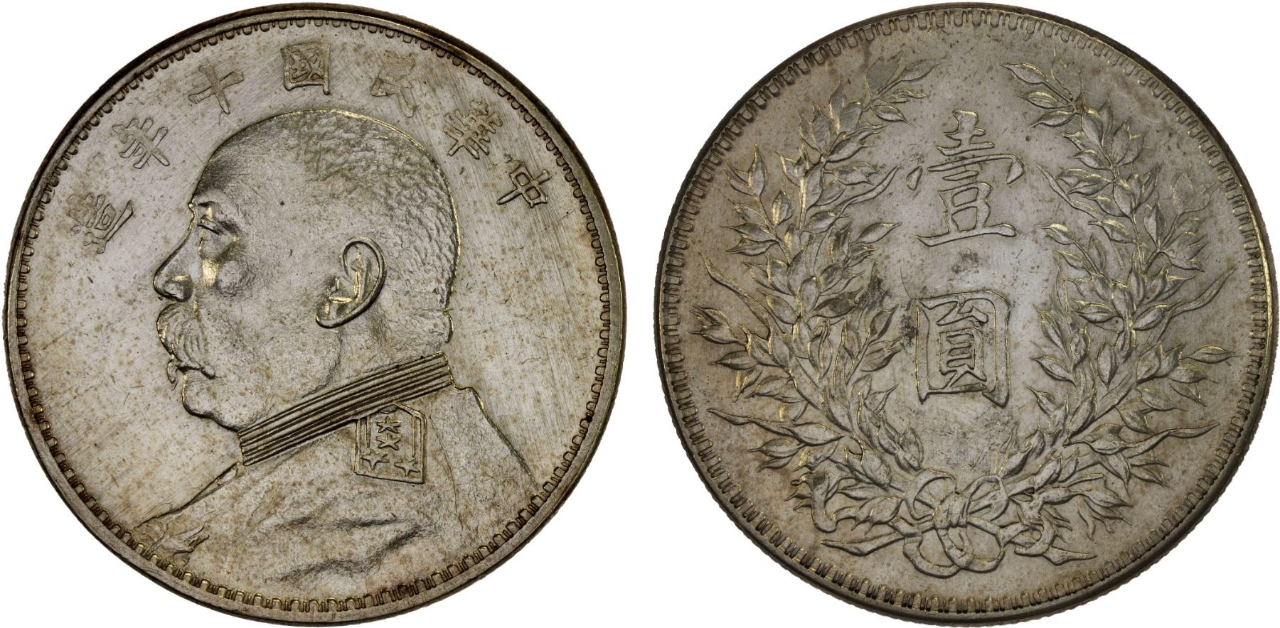 CHINA: Republic, AR dollar, year 10 (1921), Y-329.6, L&M-79, Yuan Shi Kai in military uniform, cleaned, XF.