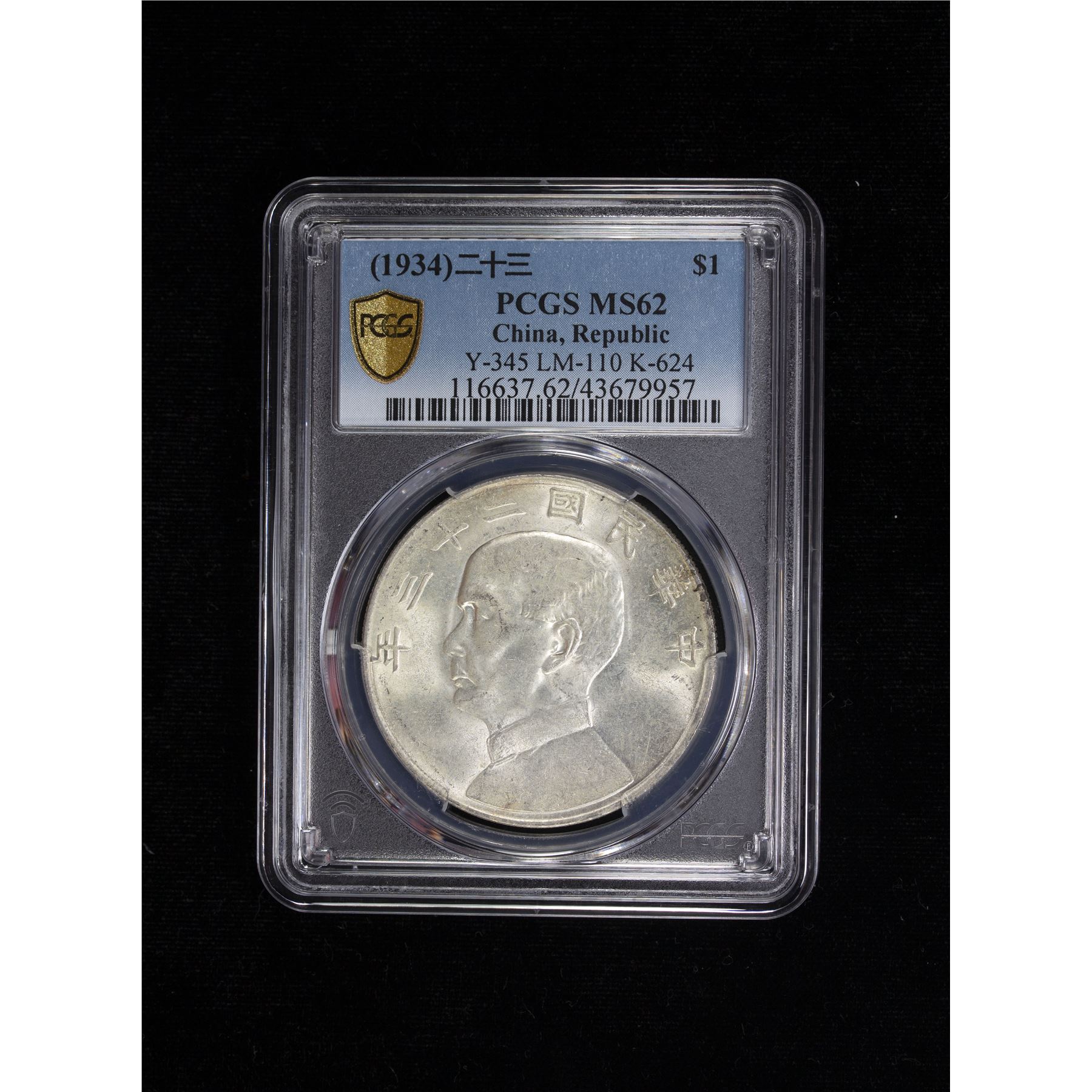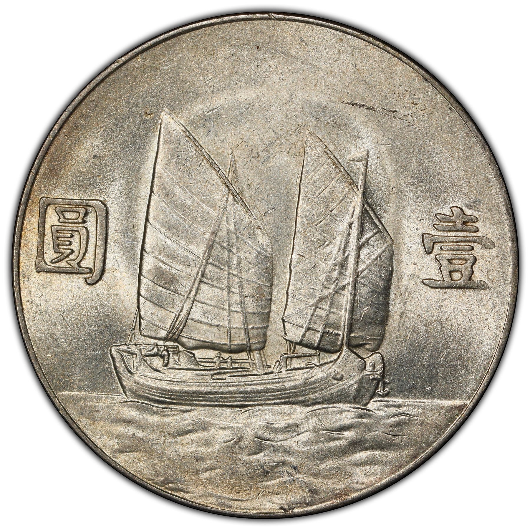 CHINA: Republic, AR dollar, year 23 (1934), Y-345, L&M-110, Sun Yat-sen, Chinese junk under sail, PCGS graded MS62.