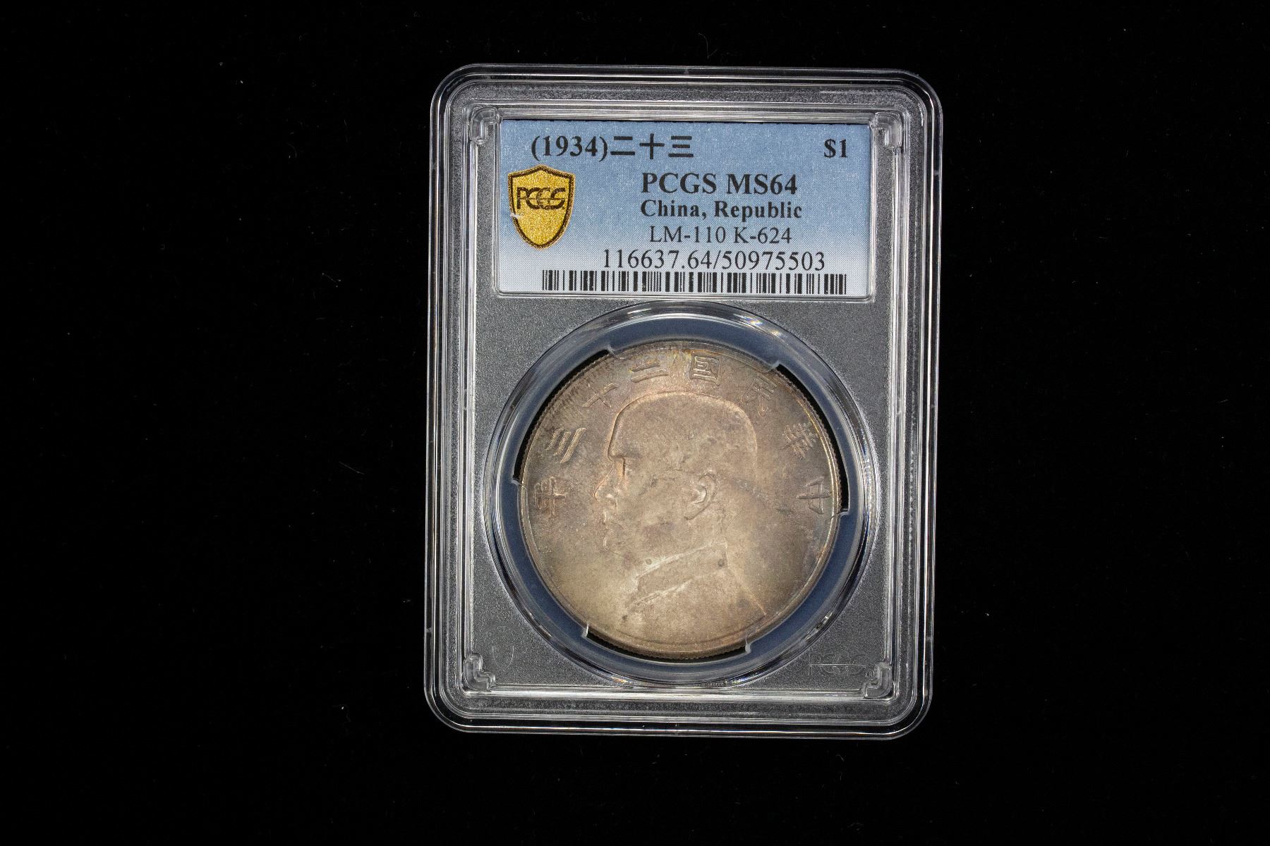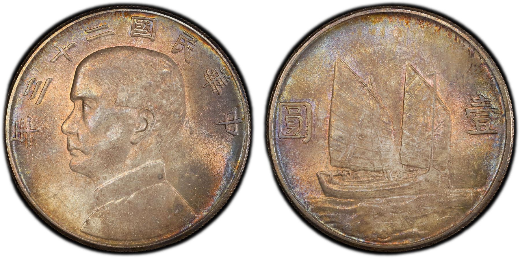 CHINA: Republic, AR dollar, year 23 (1934), Y-345, L&M-110, K-624, Sun Yat-sen // Chinese junk under sail, superb light toning and nearly gem mint state, PCGS graded MS64, ex Almer H. Orr III Collection.