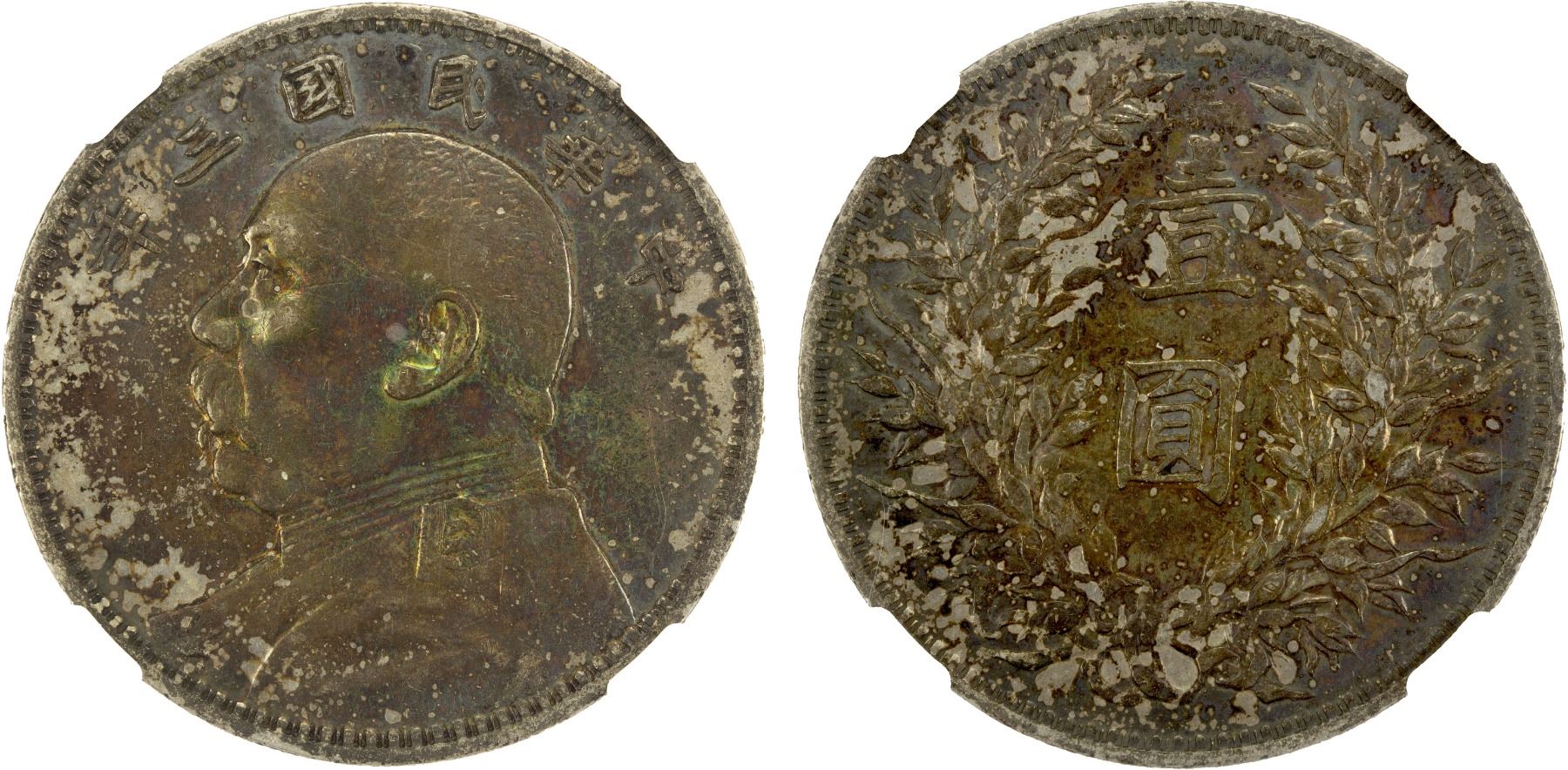 CHINA: Republic, AR dollar, year 3 (1914), NGC EF45
