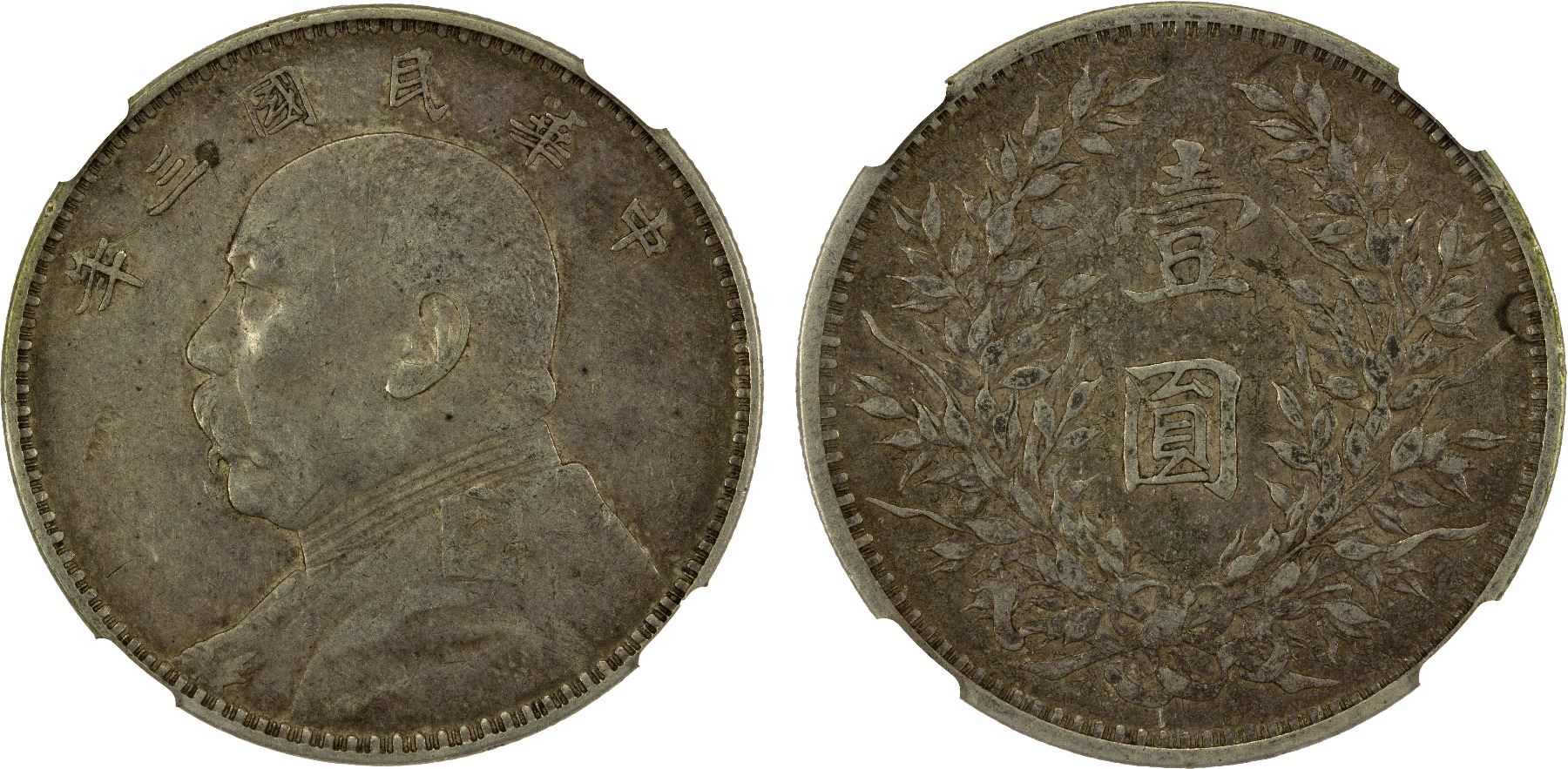 CHINA: Republic, AR dollar, year 3 (1914), Y-329, L&M-63, Yuan Shi Kai in military uniform, PCGS graded EF40.