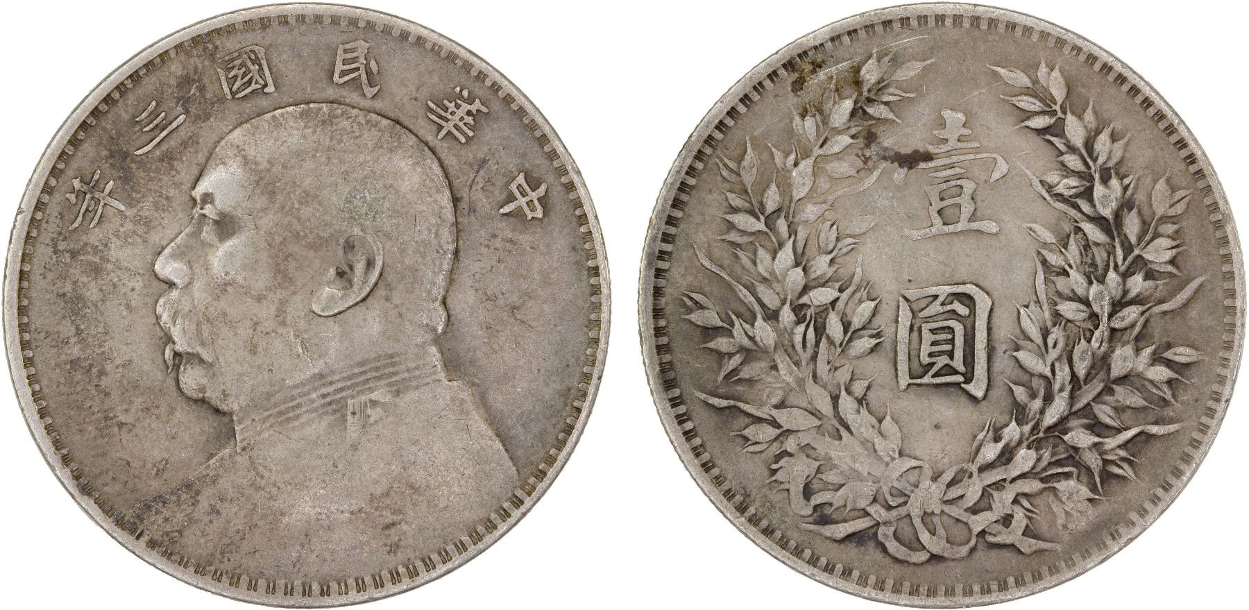 CHINA: Republic, AR dollar, year 3 (1914), Y-329, Yuan Shi-Kai, small contact mark on his neck, VF.