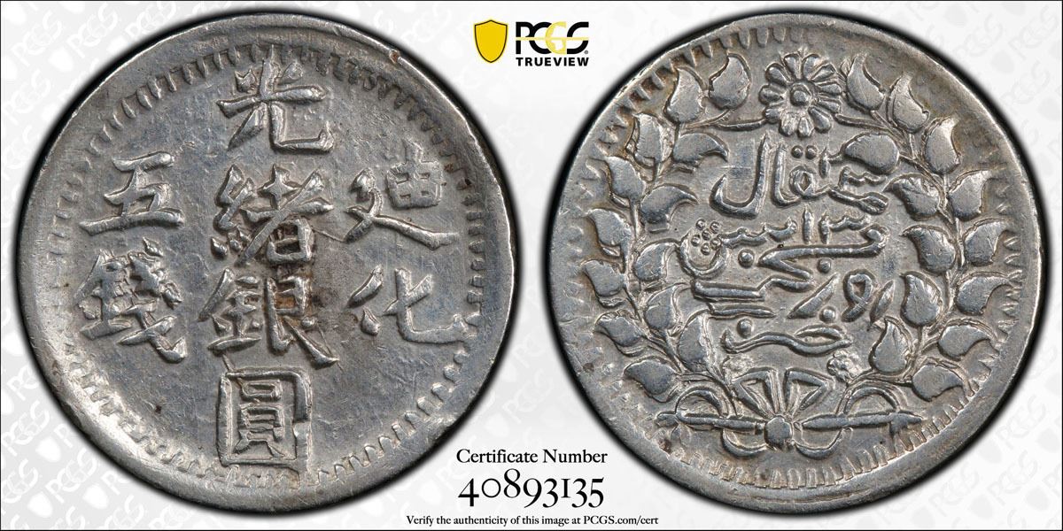 CHINA: SINKIANG: Kuang Hsu, 1875-1908, AR 5 miscals, Urumqi (Dihwa), AH1323. PCGS VF