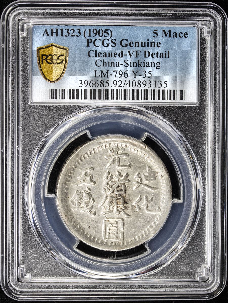 SINKIANG: Kuang Hsu, 1875-1908, AR 5 miscals, Urumqi (Dihwa), AH1323, Y-35, cleaned, PCGS graded VF details.