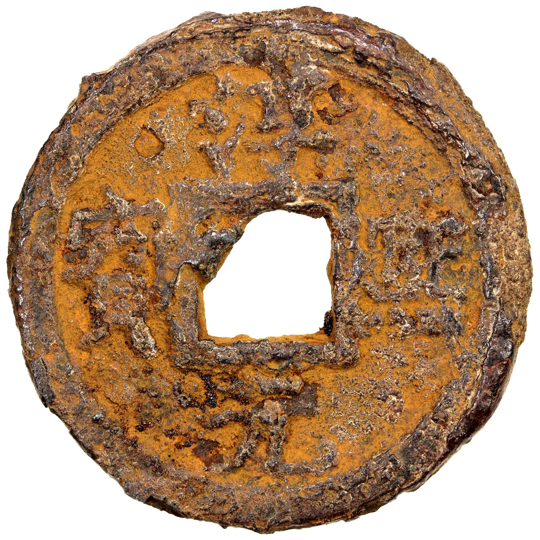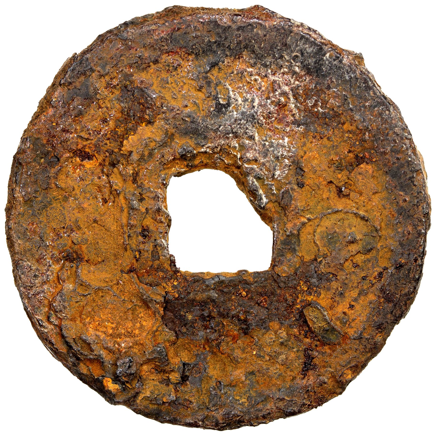 CHINA: SOUTHERN SONG: Chun Xi, 1174-1189, iron 3 cash (9.18g), H-17.290, medium characters, with two dots and crescent above on reverse, usual oxidation, Fine, S, ex Dr. Allan Pacela Collection. These 3 cash coins in iron were cast in Sichuan between 1179 and 1189.