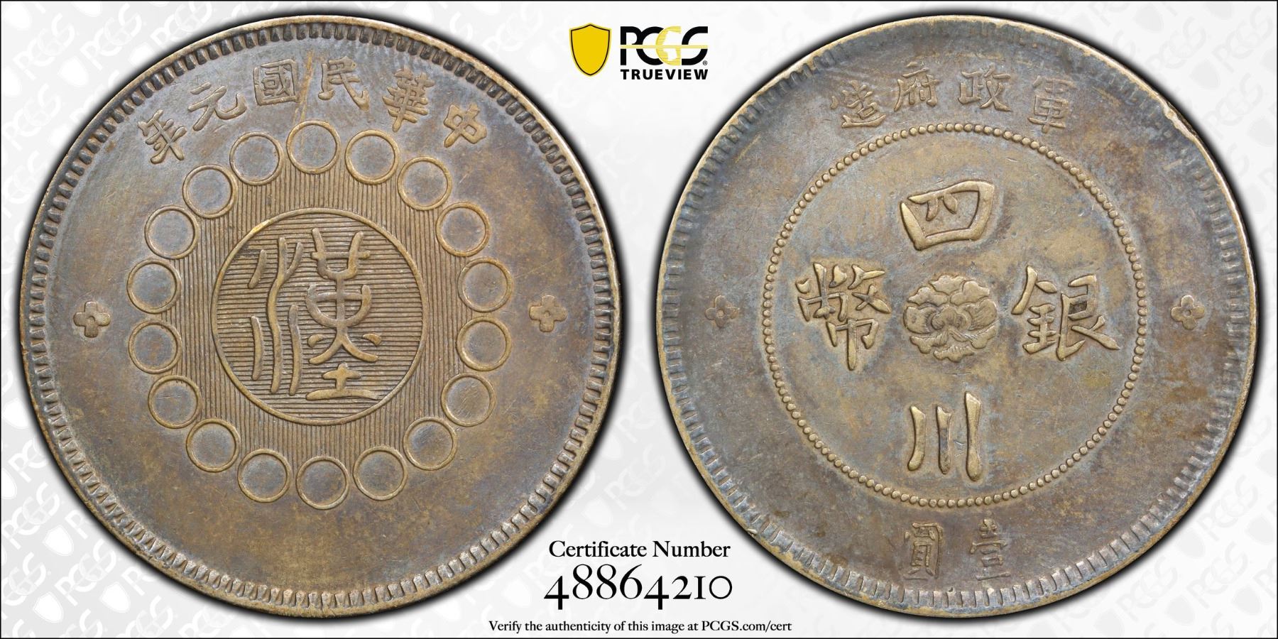 SZECHUAN: Republic, AR dollar, year 1 (1912), Y-456, L&M-366, Military Government issue, seal script character han at center, character yin connected variety, lightly cleaned, one-year type, attractively toned with good eye appeal, PCGS graded XF details.