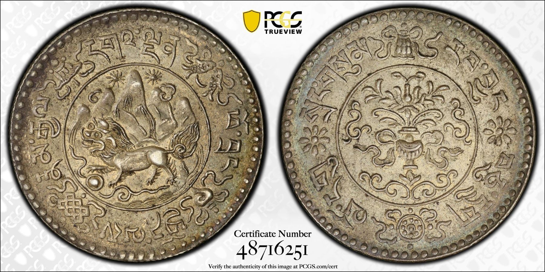 TIBET: AR 3 srang, Tapchi, BE16-9 (1935), Y-26, L&M-658, light tone, PCGS graded AU58.