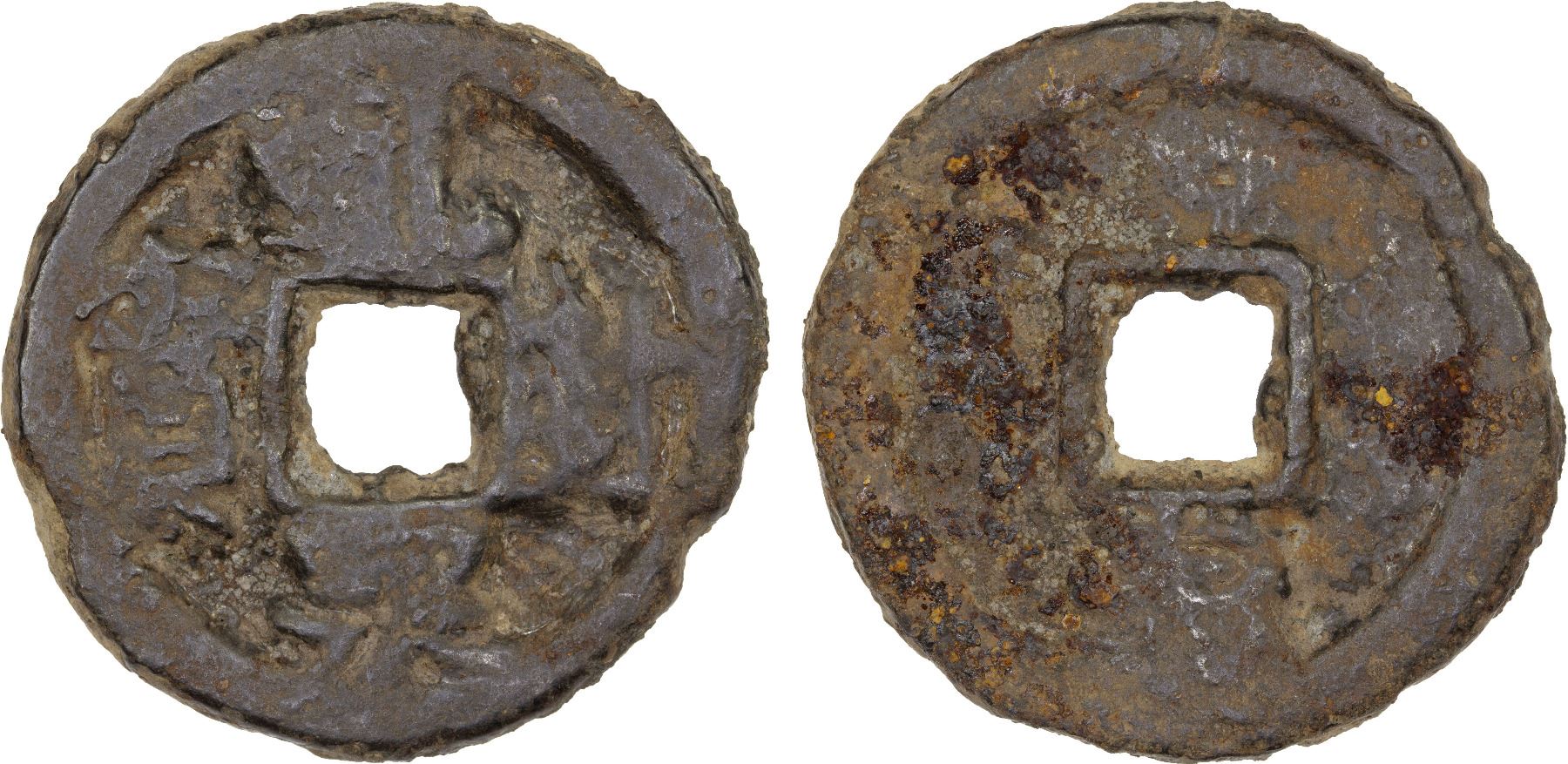 CHU: Qian Feng, 925-951, iron 10 cash (20.2g), H-15.63, qian feng quán bao, with ce above on reverse, graded 72 by GBCA Grading Company, Fine, ex Dr. Dirk Löer Collection. According to the histories, because there was much lead and iron in Hunan, Ma Yin took the advice of his minister Gao Yu to cast lead and iron coins at Changsha in 925. One of these was worth ten copper cash, and their circulation was confined to Changsha. Merchants traded in these coins to the benefit of the State.
