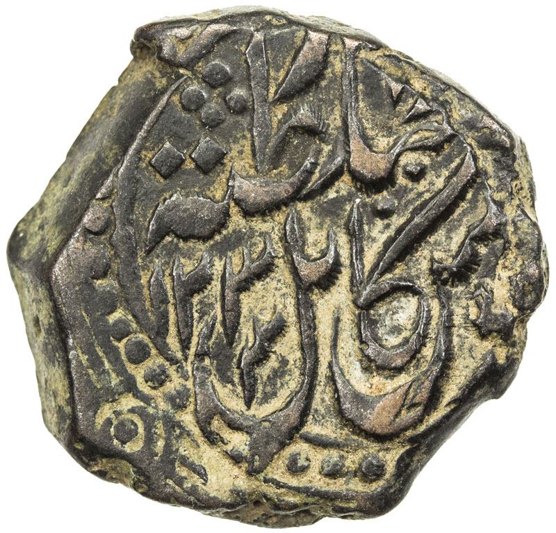 CIVIC COPPER: AE falus (8.07g), Kabul, AH1233, A-3239, ornate leaf, EF.
