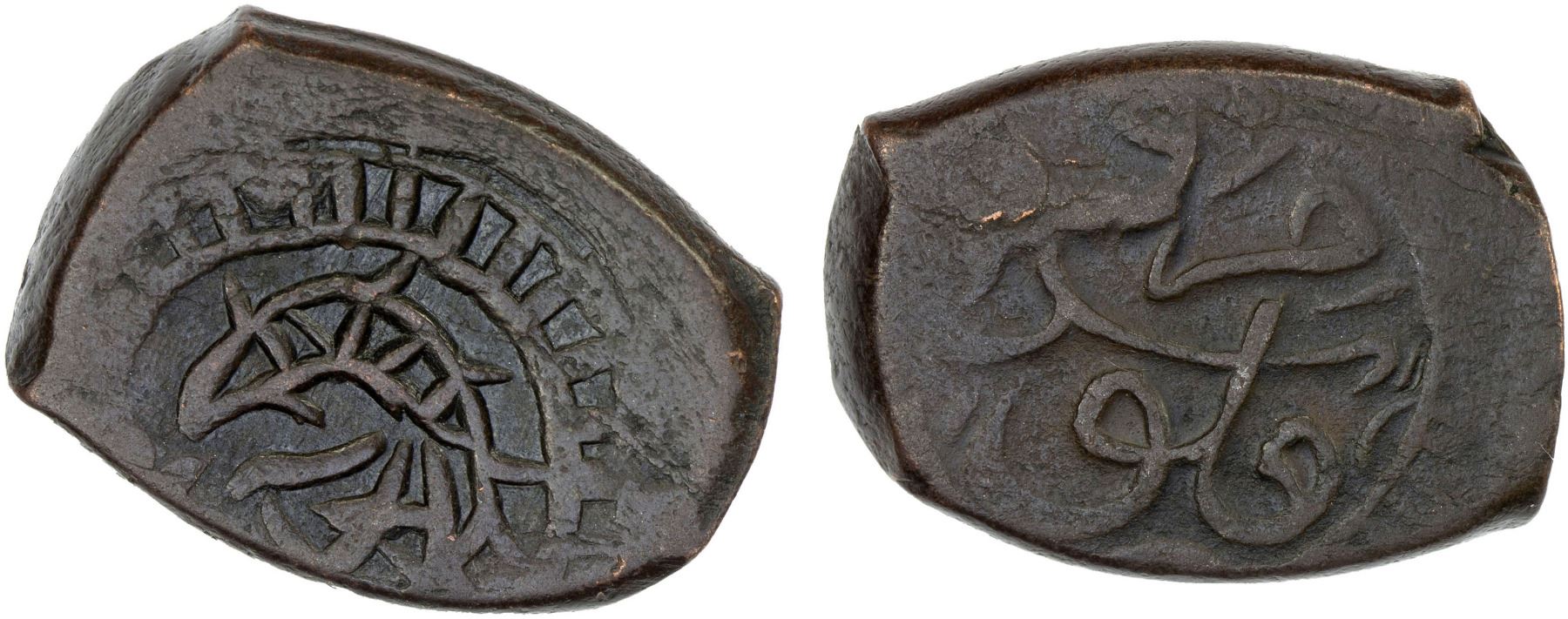 CIVIC COPPER: AE falus (8.94g), Marw, ND, A-A3249, fish // mint name & denomination; undated, but style of the early 19th century, apparently unpublished and one of the rarest mints for 18th and 19th century copper fulus, choice VF, RRR.