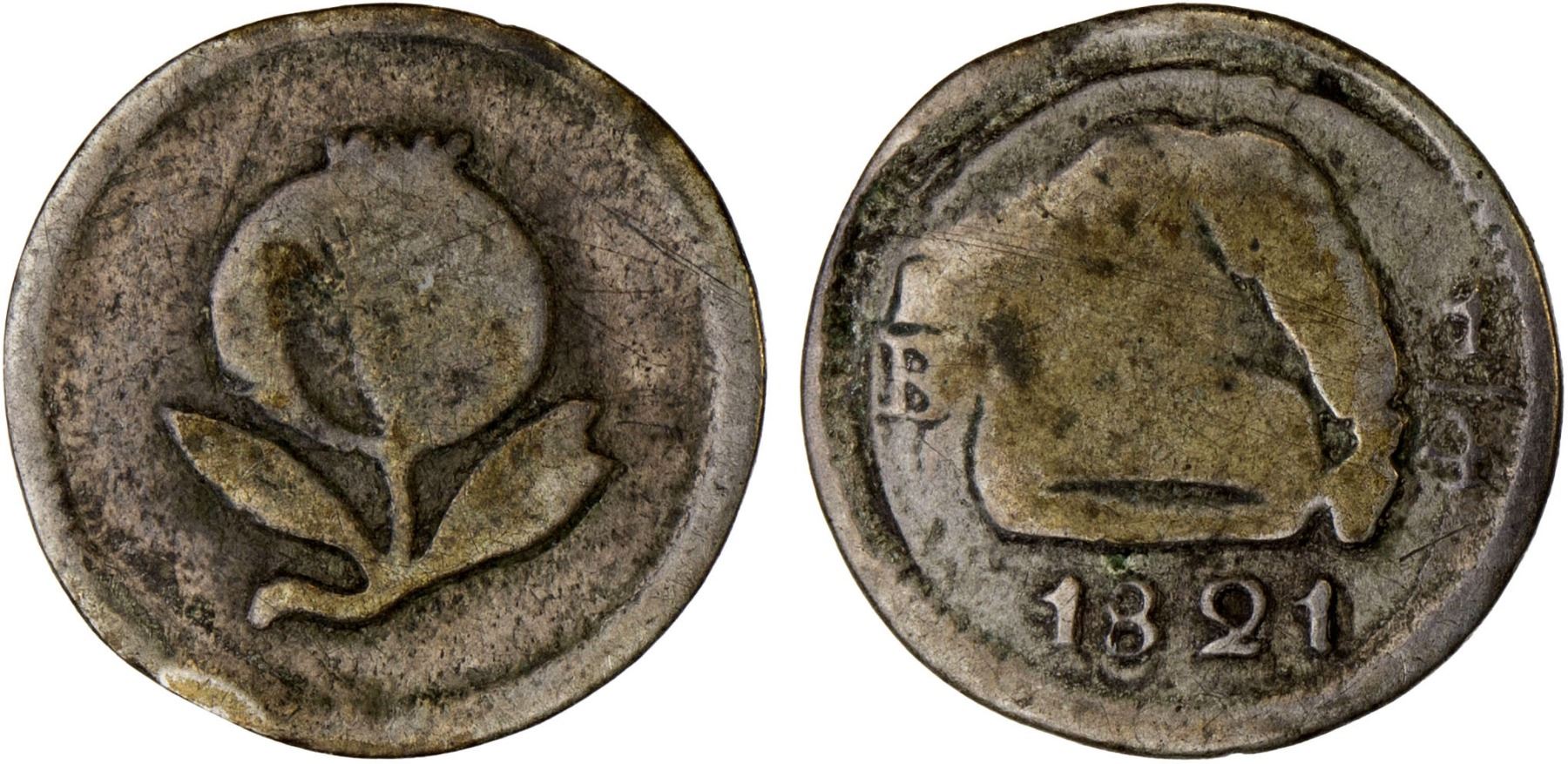 COLOMBIA: Nueva Granada, AR 1/4 real (cuartilla), 1821-BA, KM-79.2, Provisional issue, variety without dot below A of BA, one-year type, VG.