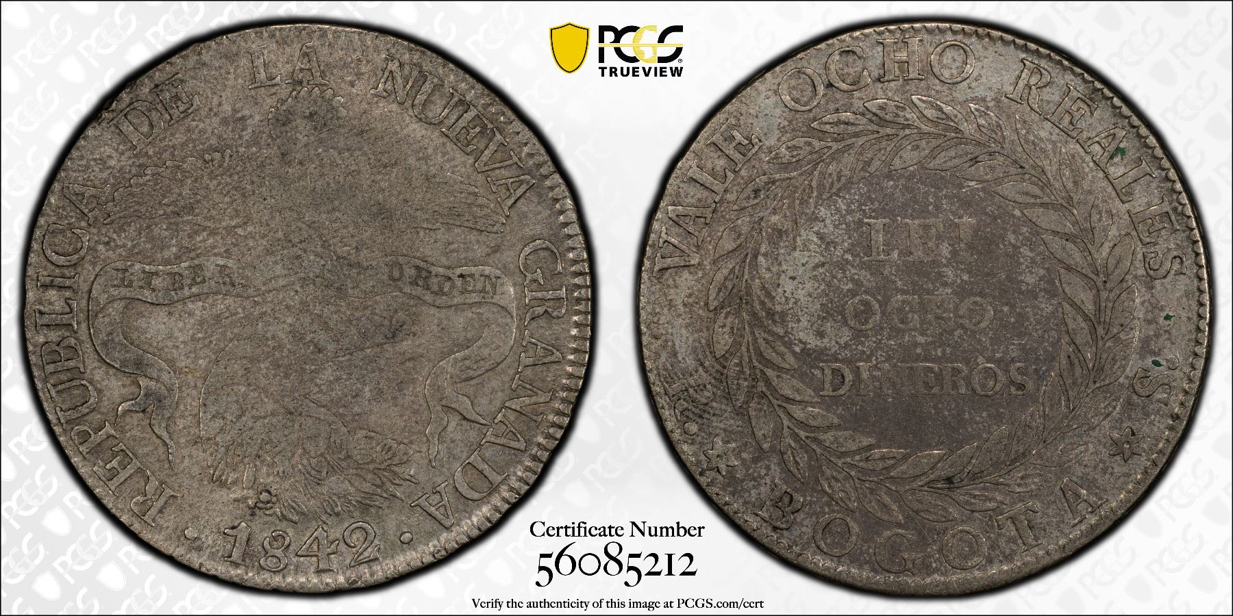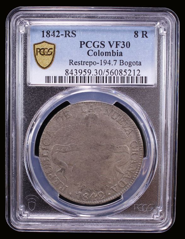 COLOMBIA: Nueva Granada, AR 8 reales, Bogota, 1842, PCGS VF30