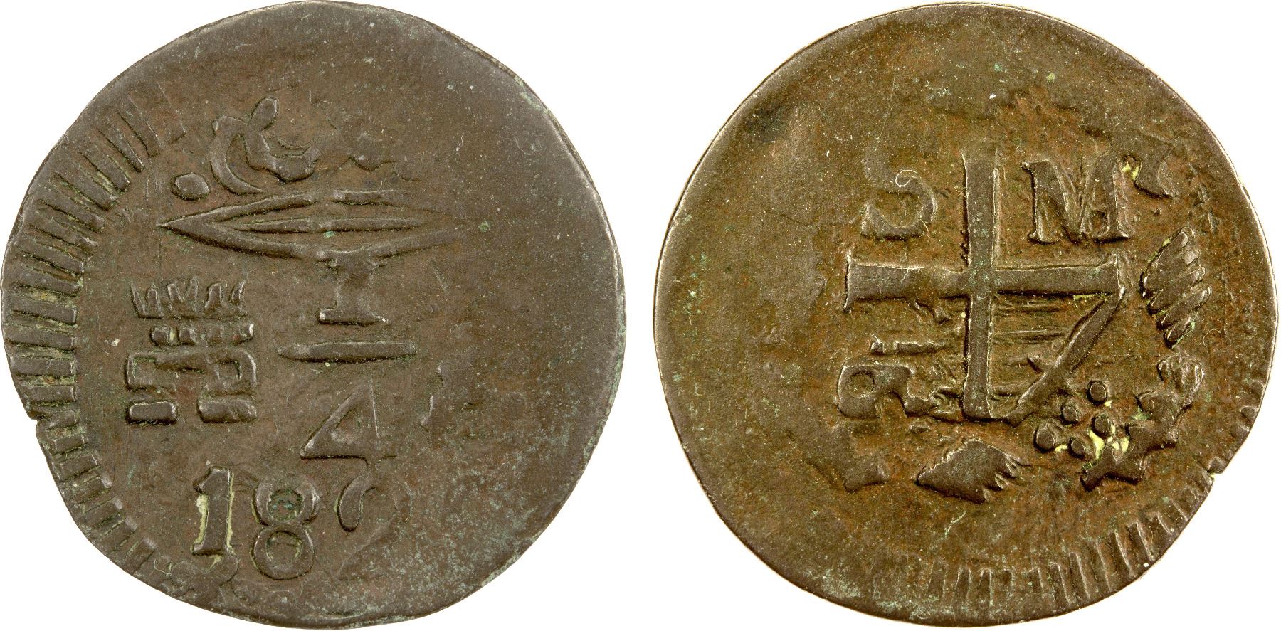 COLOMBIA: Santa Marta, AE ¼ real, 1820, KM-B4, Restrepo-104.1, initials SM, some flatness at the margins, one-year type, VF.