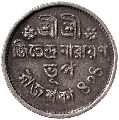 COOCH BEHAR: Jitendra Narayan, 1913-1922, AR nazarana ½ rupee (5.34g), Grish, CB404 (1914), KM-200, strong Extremely Fine, RR, ex. Eck Prud'homme collection.