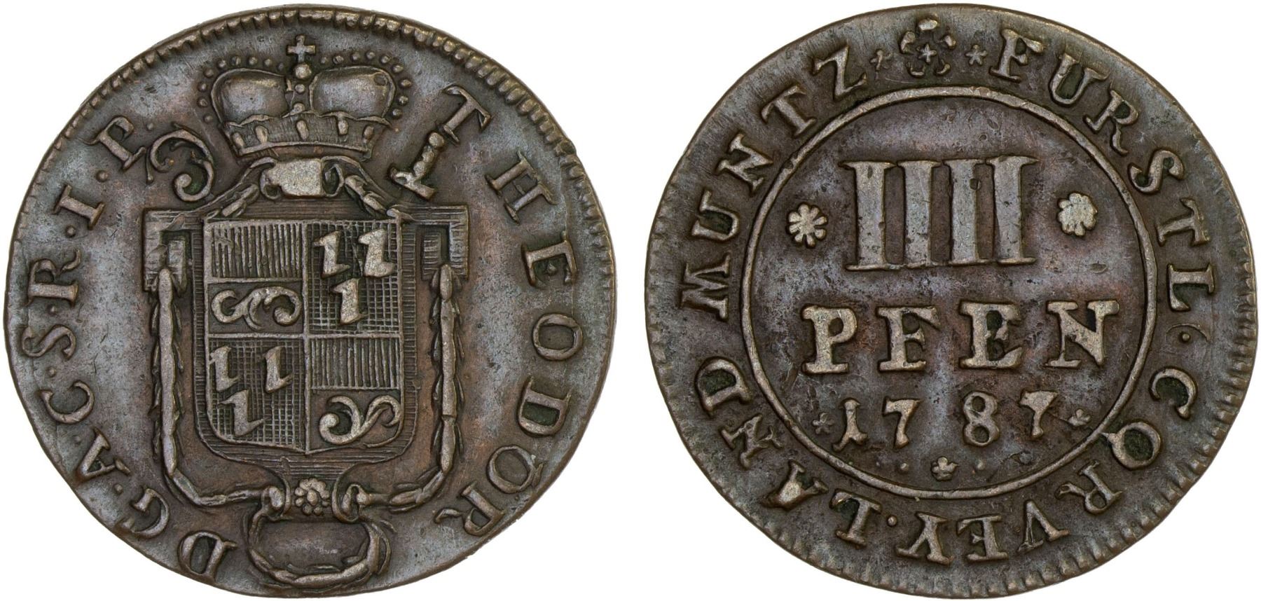CORVEY: AE 4 pfennig, 1787, KM-171, VF.