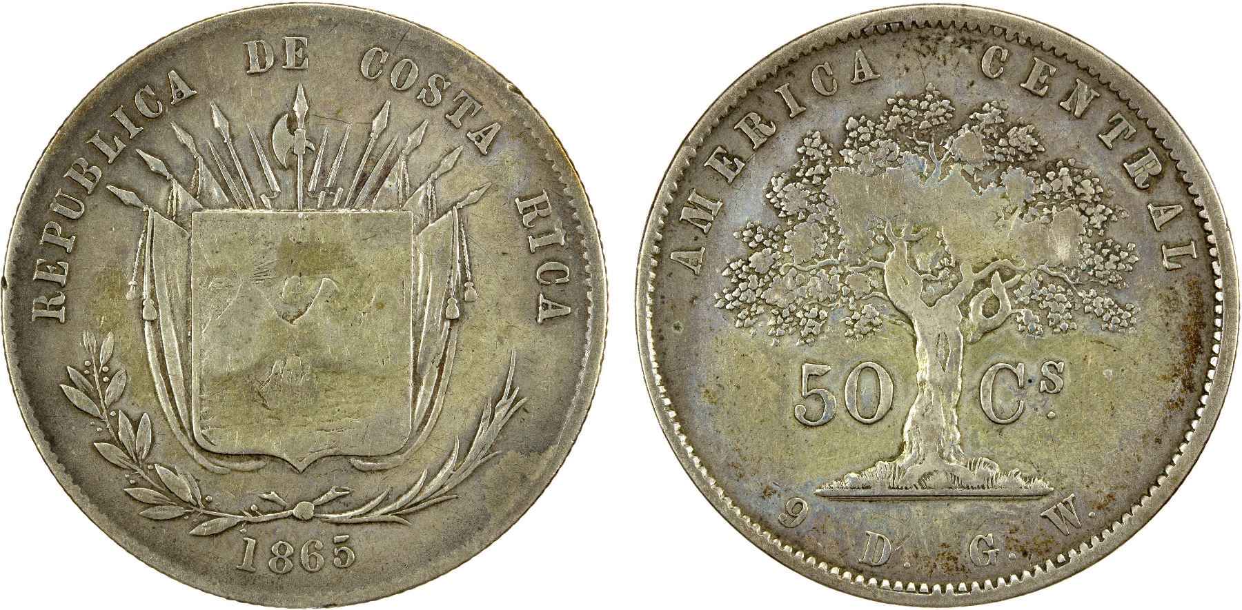 COSTA RICA: Republic, AR 50 centavos, 1865, KM-112, assayer GW, VF, ex Almer H. Orr III Collection.