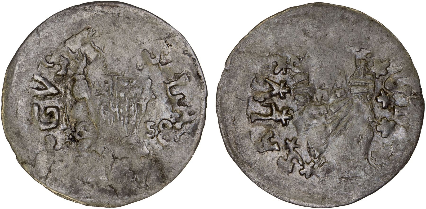 CROATIA: RAGUSA: Republic, AR grosetto (dinaric), 1658, KM-5, Saint Blase standing facing // Christ standing facing, crudely struck as usual, VF.