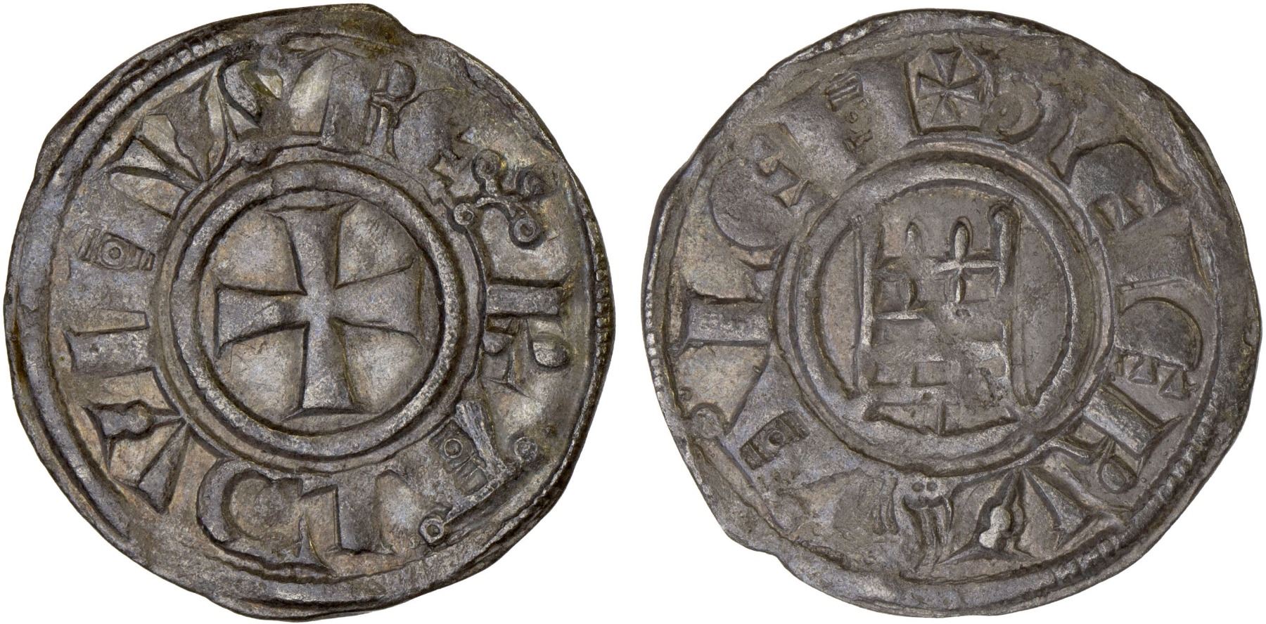 CRUSADER: KINGDOM OF JERUSALEM: Baldwin III, 1143-1163, BI denier (1.04g), Jerusalem, CCS-10, cross pattée // Tower of David, XF.