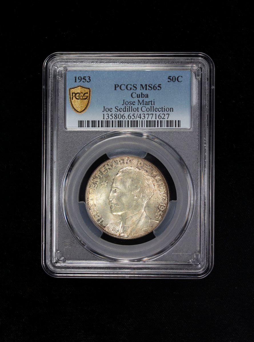 CUBA: Republic, AR 50 centavos, 1953, KM-28, 100th Anniversary of the birth of José Martí, a superb quality example! PCGS graded MS65, ex Joe Sedillot Collection.