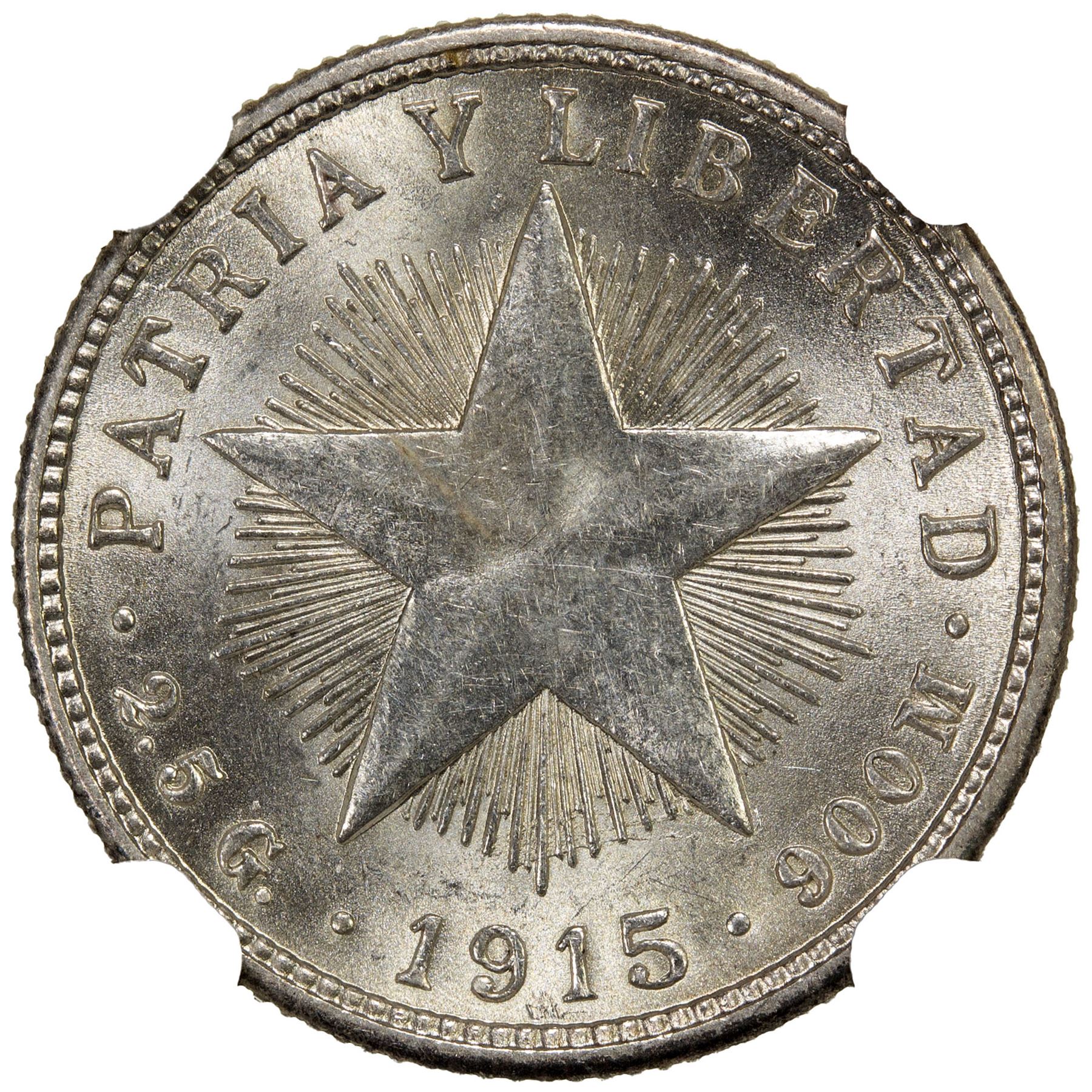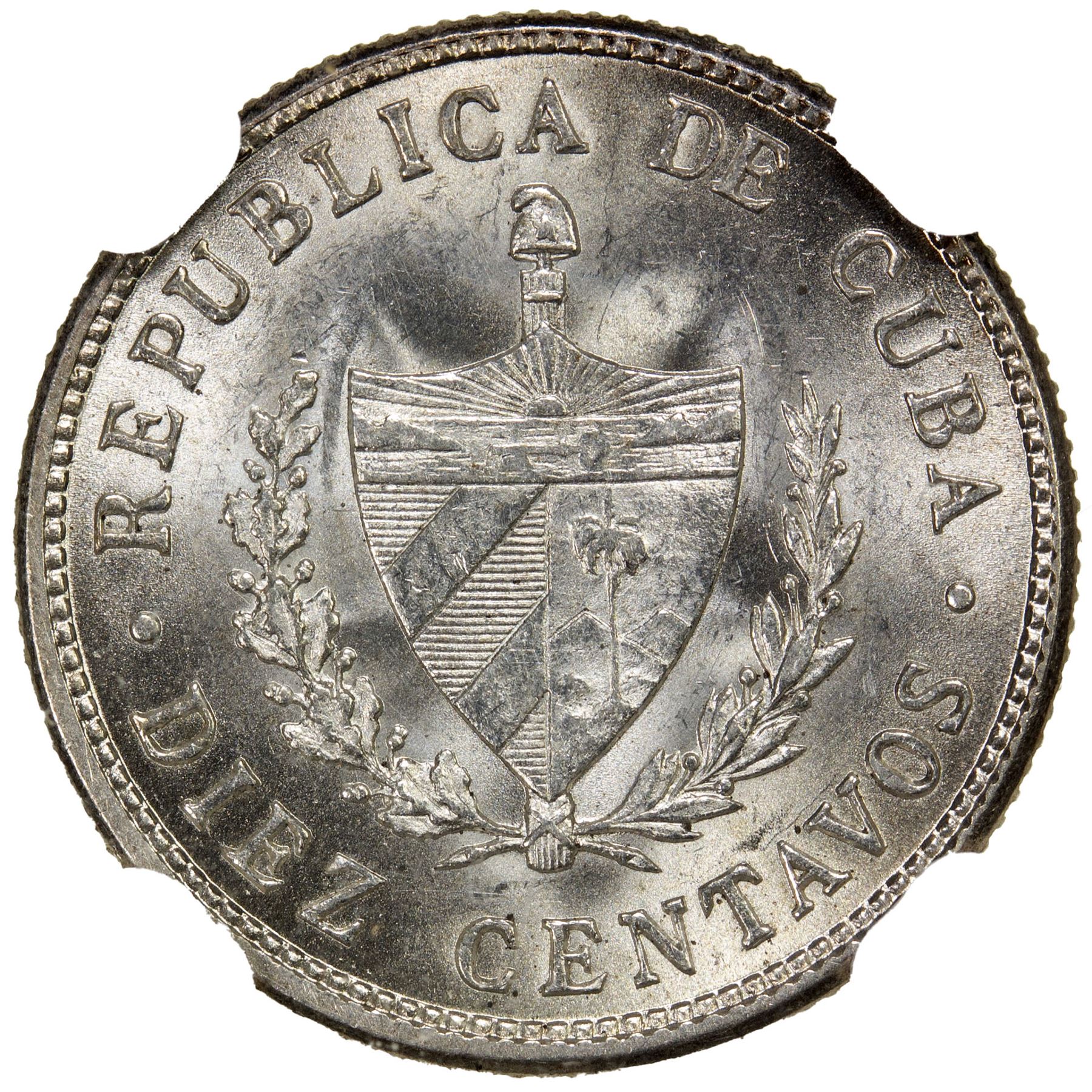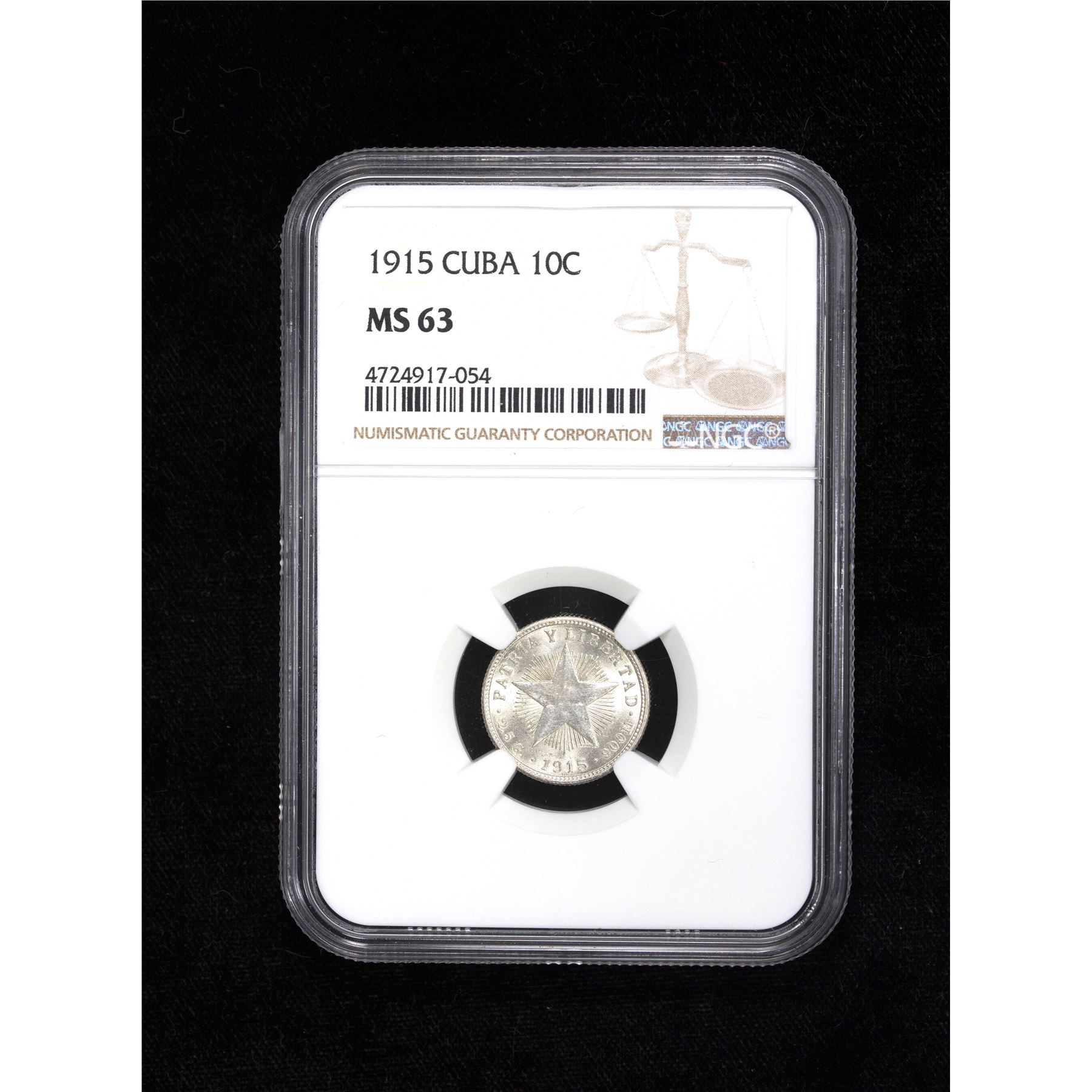 CUBA: First Republic, AR 10 centavos, 1915, KM-A12, blast white luster, NGC graded MS63.