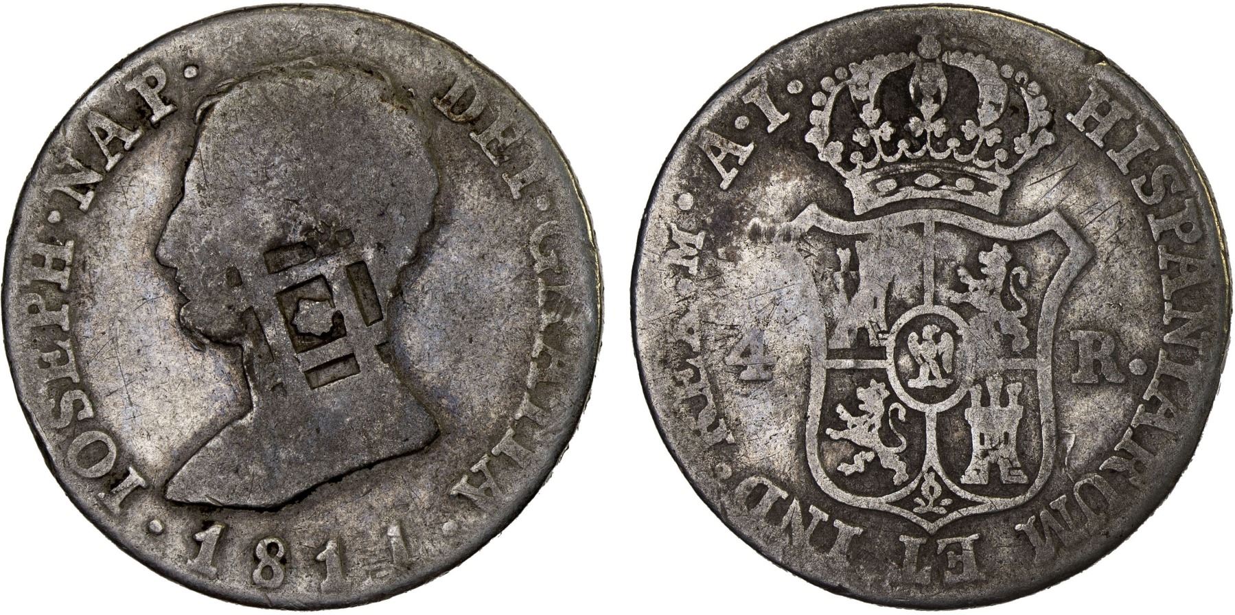 CUBA: Isabel II, 1833-1868, AR 4 reales, ND (1841), KM-7, lattice countermark on obverse of 1811-AI Spain/Madrid 4 reales (KM-540.1), Fine host: Good.