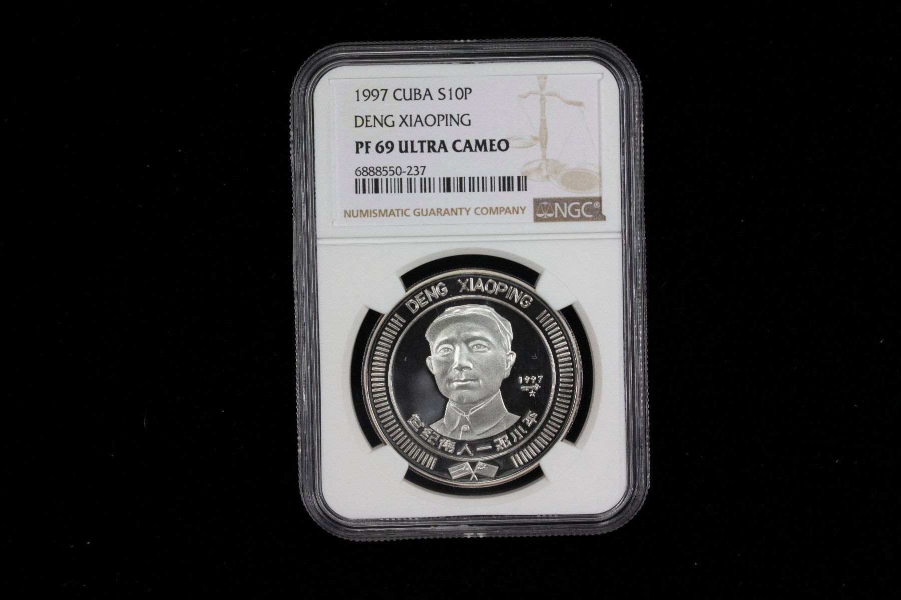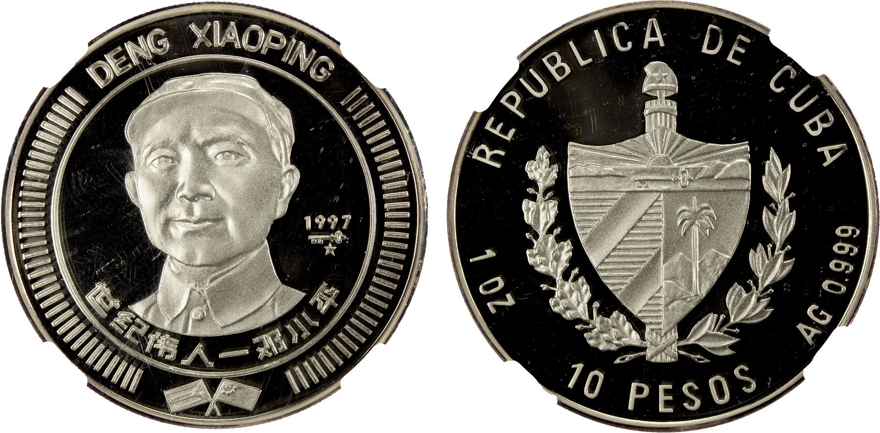 CUBA: Republic, AR 10 pesos, 1997, KM-624, Deng Xiaoping, an extraordinary example, NGC graded PF69 Ultra Cameo.