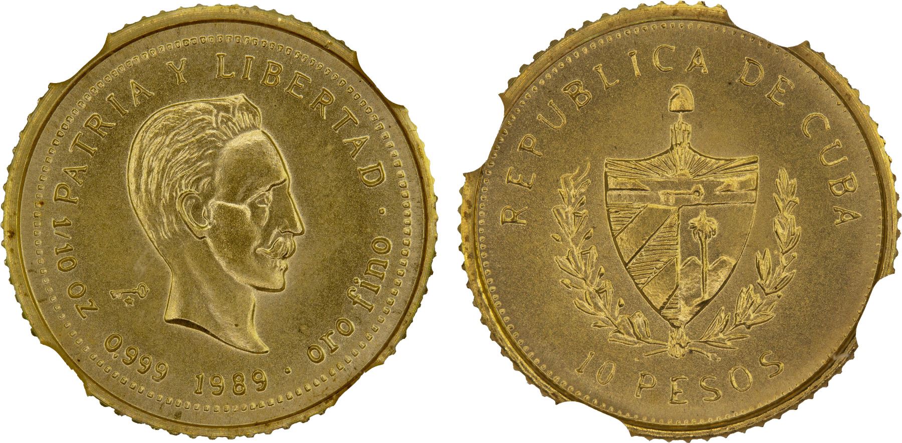 CUBA: Republic, AV 10 pesos, 1989, KM-211, Fr-24, Jose Marti, mintage of only 2,250, NGC graded MS69