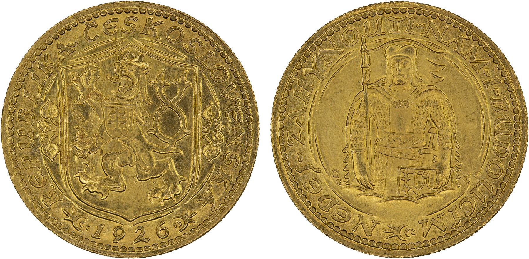 CZECHOSLOVAKIA: Republic, AV dukat, 1926, KM-8, struck at the Kremnica Mint, St. Wenceslaus with banner, a beautiful lustrous mint state example, UNC.