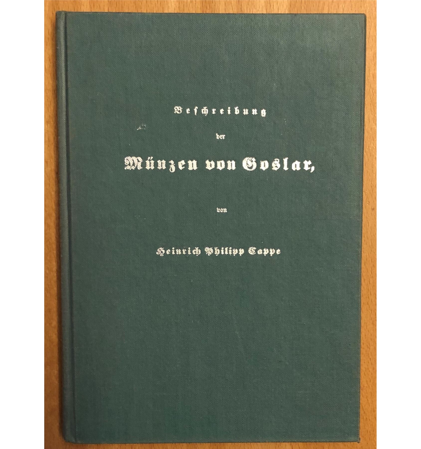 Cappe, Heinrich Philipp, Beschreibung der Muenzen von Goslar, E. S. Mittler und Sohn, Dresden, 1860, reprinted by Numismatischer Verlag Wolfgang Winkel, Bielefeld, 1974, 137 pages, 9 plates, hardcover. Numbered copy 95 of limited reprinting of 200 copies. The coinage of the German free city of Goslar. After 1802 was a part of Prussia, then Westphalia, then Hannover, then Prussia again. Covers the years 1039 during the Holy Roman Empire through 1764, ex James Farr Collection Library.