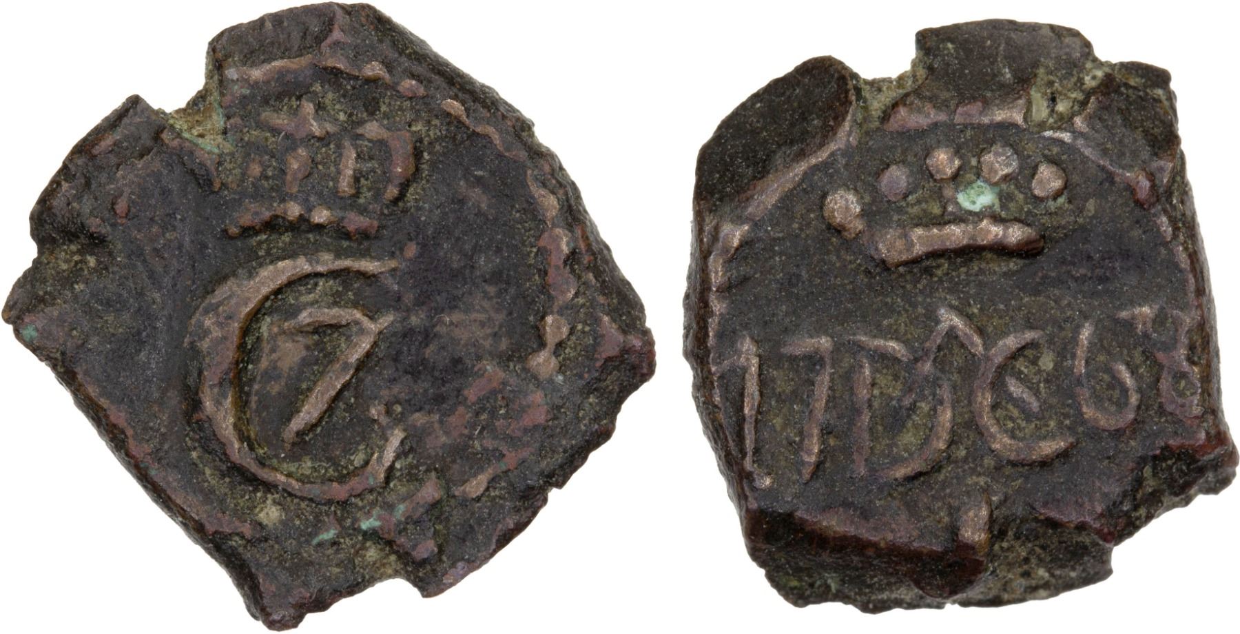 DANISH INDIA: Christian VII, 1766-1808, AE 1 kas (0.62g), Tranquebar, 1768, KM-150, Gray-151, Jensen-356, full date, bold VF-XF, RR.
