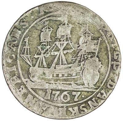 DANISH WEST INDIES: AR 6 skilling, 1767, KM-11, Sieg-8, Hede-9, rims a bit weak, Fine, ex Dr. John Lund Collection.