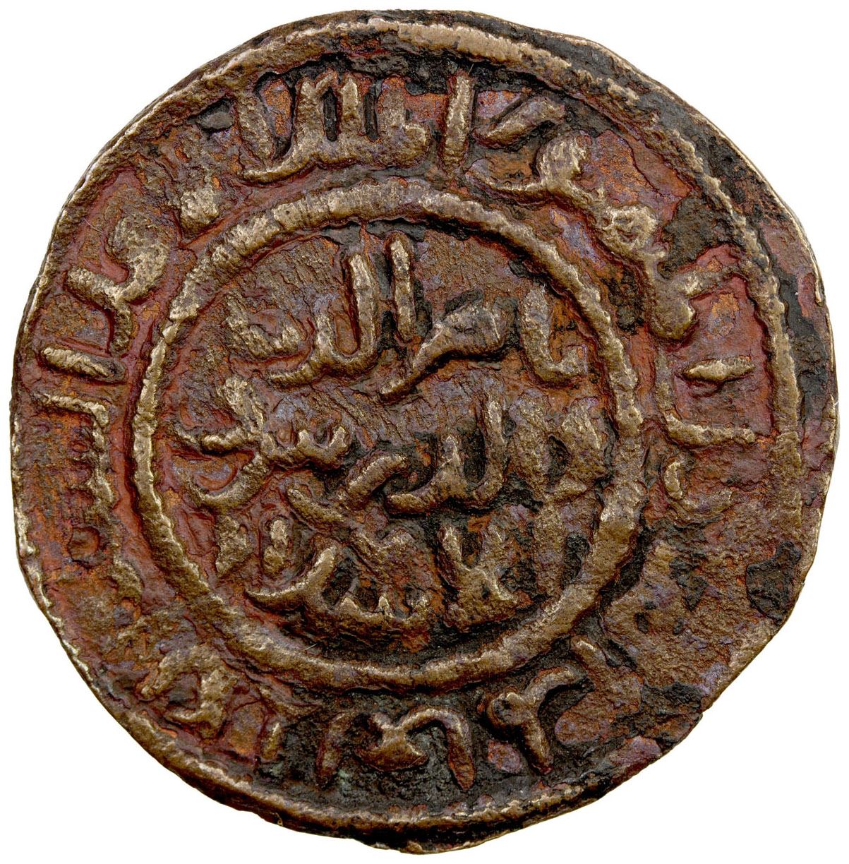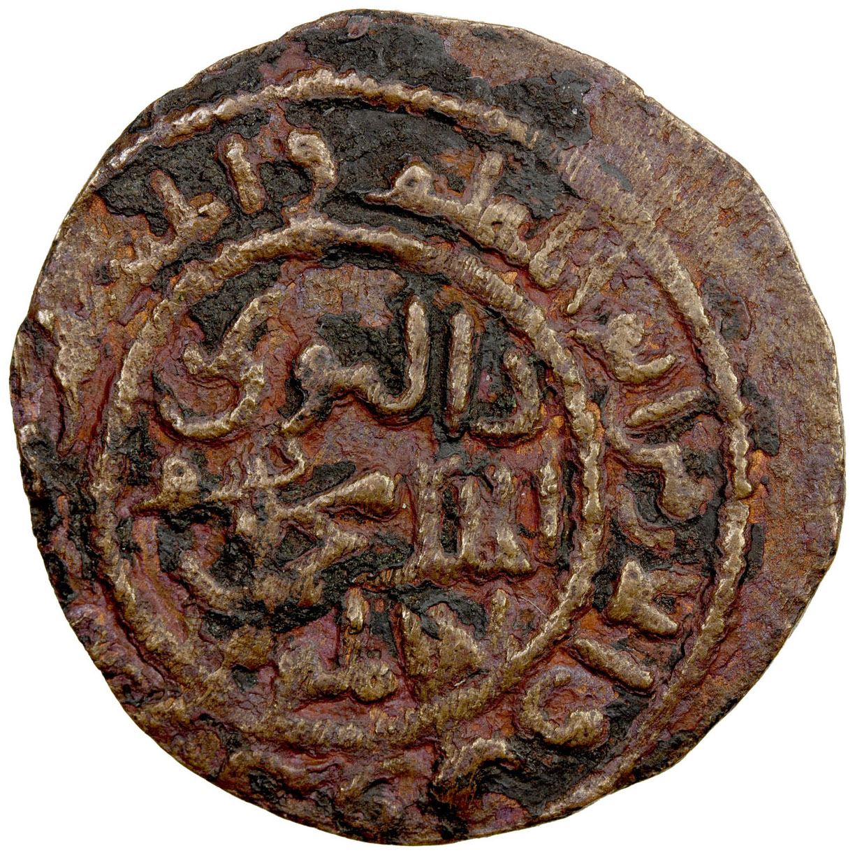 DANISHMENDID: 'Imad al-Din Dhu'l-Nun, 1142-1175, AE dirham (5.98g), NM, ND, A-1244.2, but Arabic inscriptions only, with central field and outer margin on both sides, title Nasir al-Din, bold strike, with no weakness, strong VF, RR.