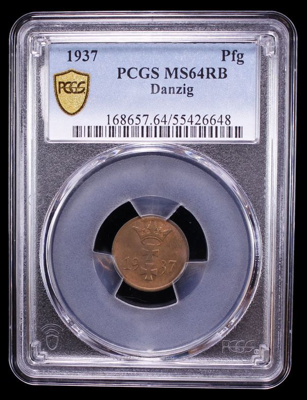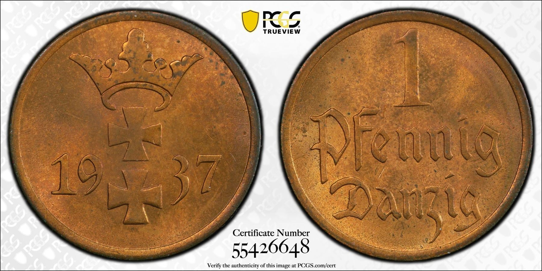 DANZIG: Free City, AE pfennig, 1937, PCGS MS64 RB