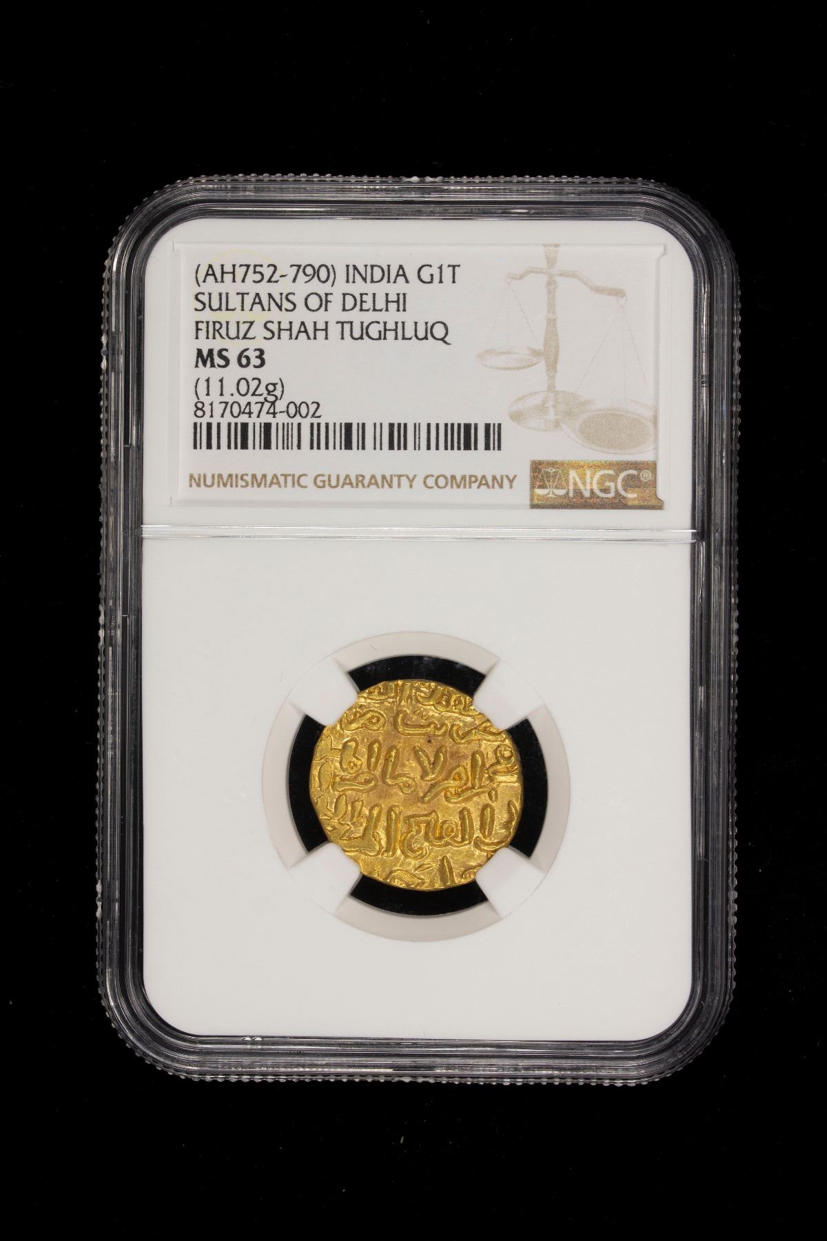 DELHI: Firuz Shah Tughluq, 1351-1388, AV tanka (11.02g), NM, ND, G-D463, always without mint & date, presumably struck at Delhi; amazing bold strike, NGC graded MS63.
