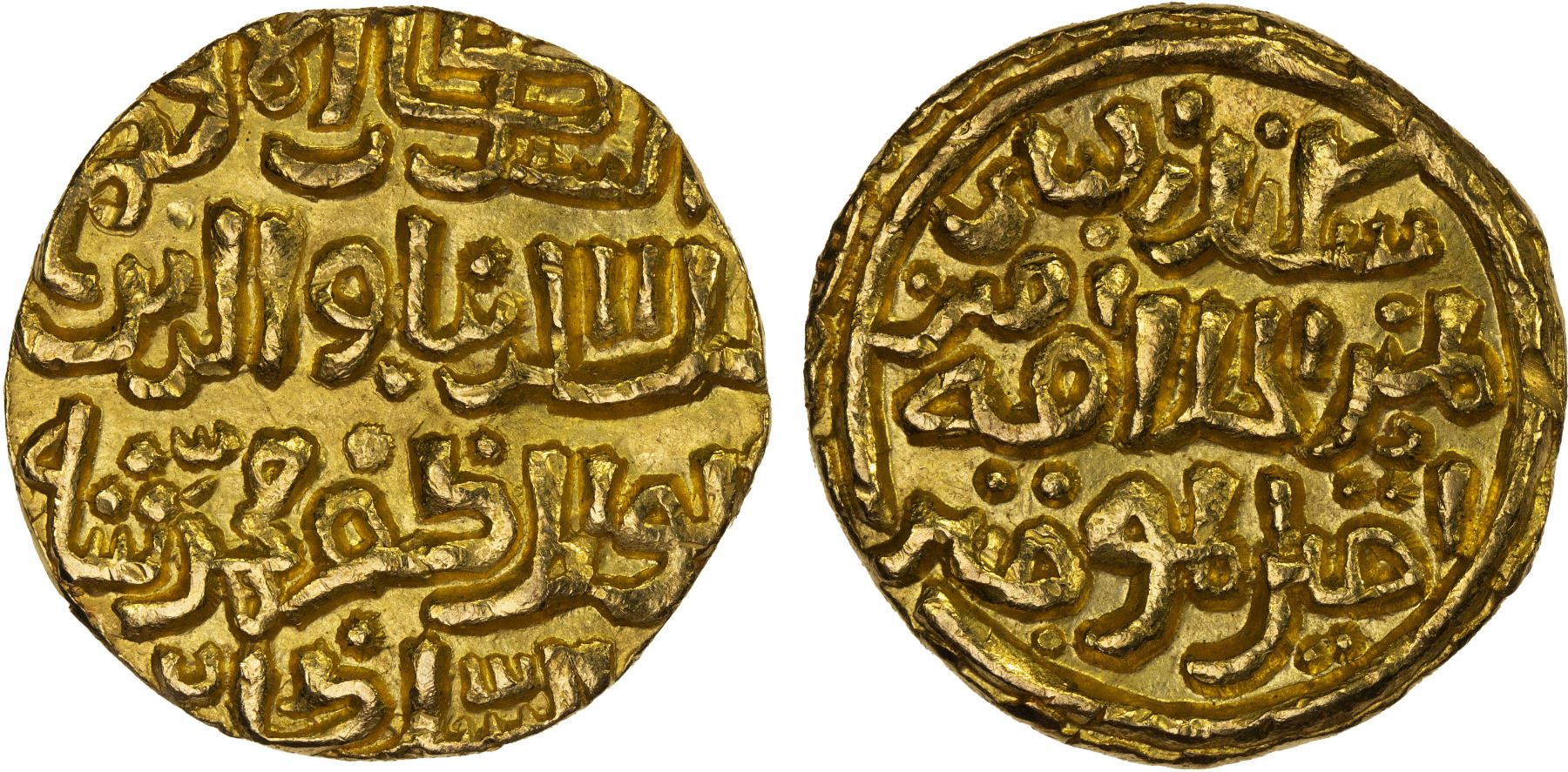 DELHI: Muhammad II, 1296-1316, AV tanka (10.91g), MM, DM, G-D220/222, possibly style of the Qila Deogir mint; lovely bold strike, choice XF.