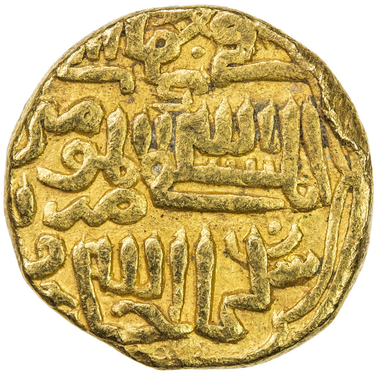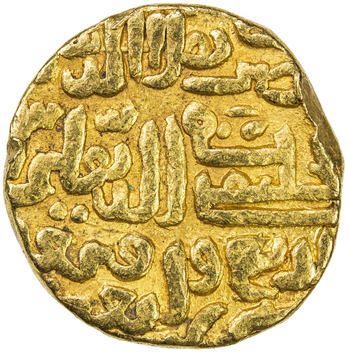 DELHI: Muhammad III b. Tughluq, 1325-1351, AV khalifat dinar (11.07g), Delhi, AH744, G-D427, anonymous, citing only the theoretical caliph al-Mustakfi, one edge bump, struck on thick narrow flan, VF.