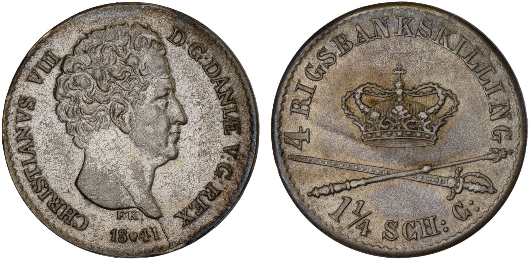DENMARK: Christian VIII, 1839-1848, AR 4 rigsbankskilling, 1841(h)-FK, XF