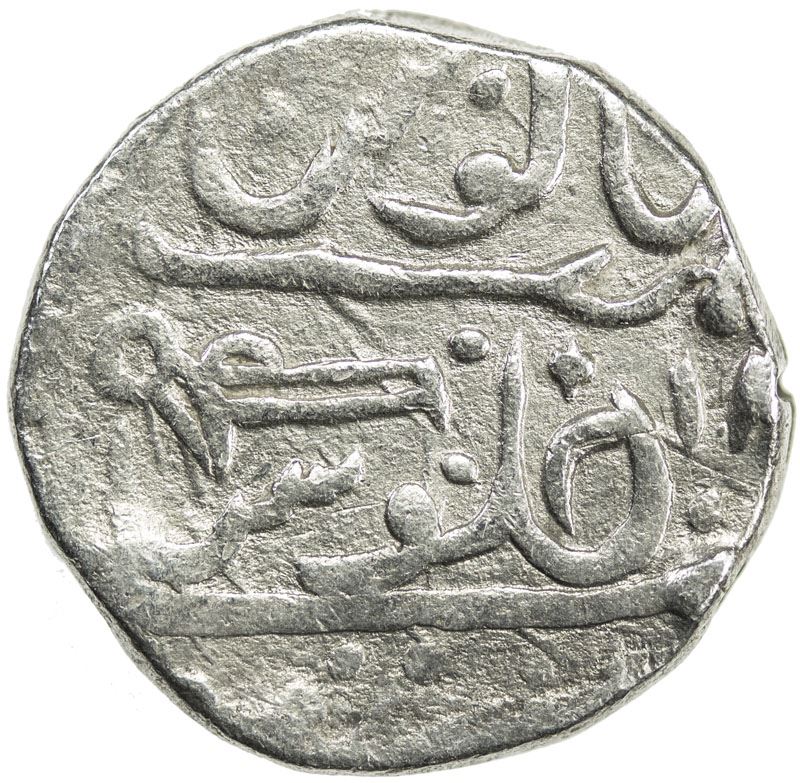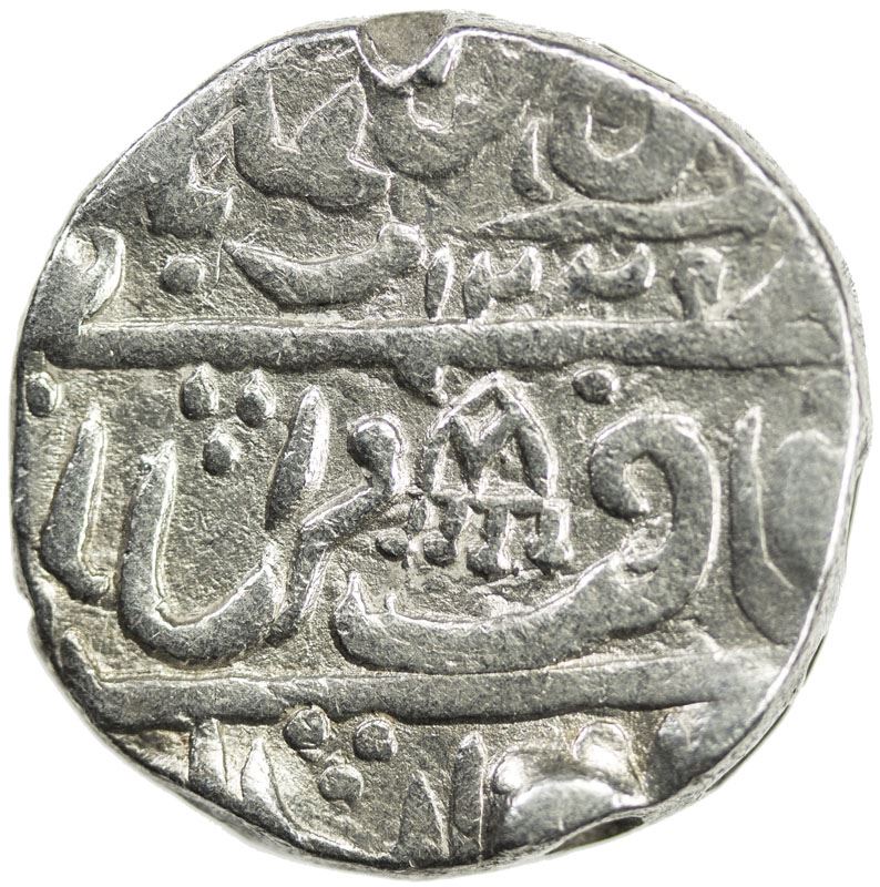 DHOLPUR: Kirat Singh, 1806-1837, AR rupee (10.85g), Dholpur, AH1229 year 18, Cr-12.2, in the name of Muhammad Akbar II, pistol mark, 8 testmarks on the edge only, date unlisted in KM, Fine to VF, ex Paul Stevens Collection.
