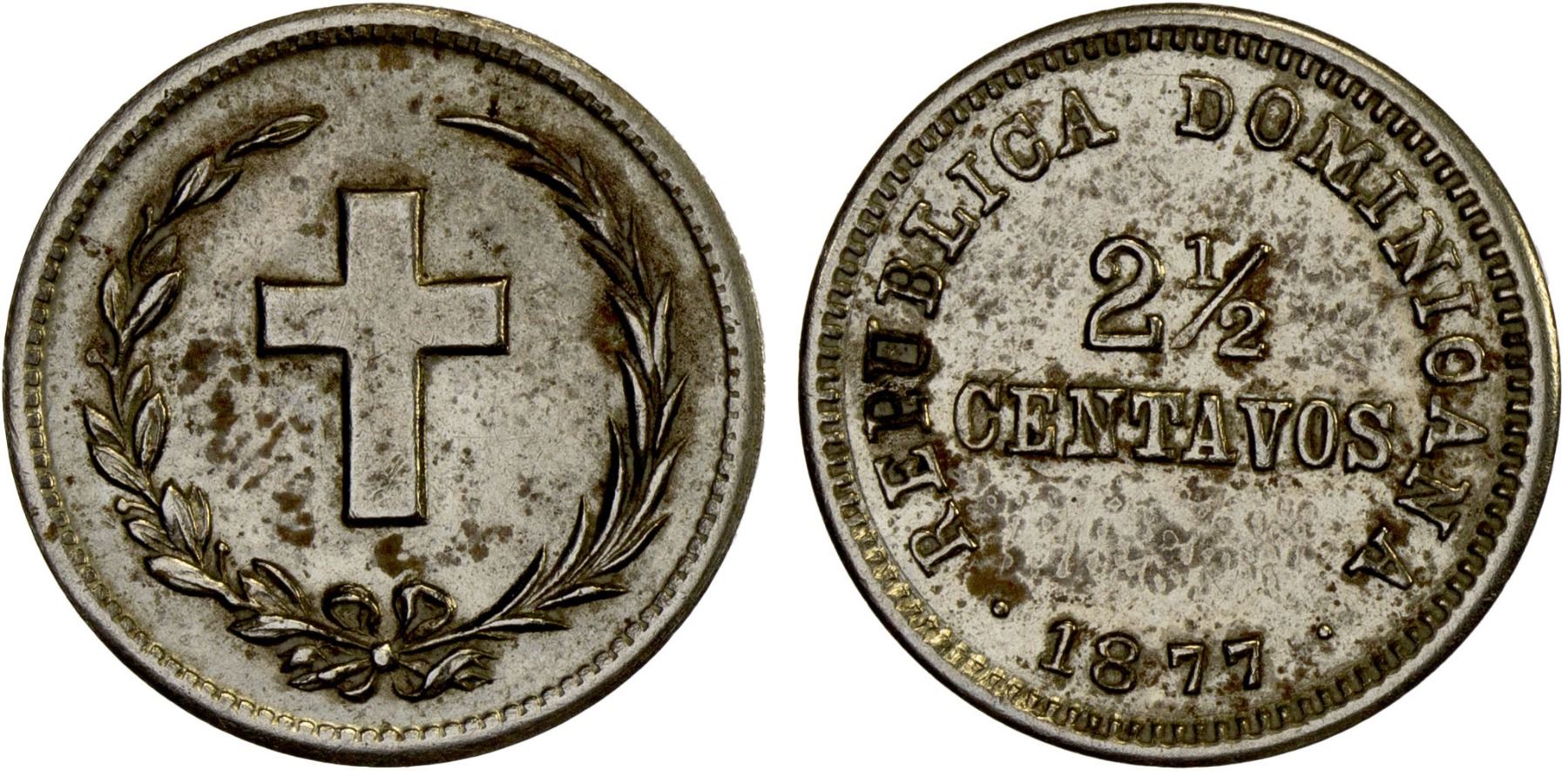 DOMINICAN REPUBLIC: Republic, 2½ centavos, 1877, XF-AU